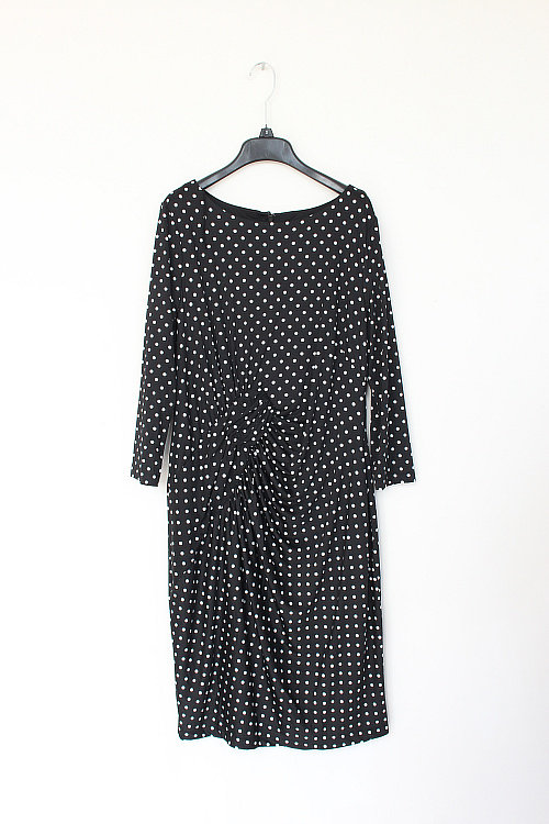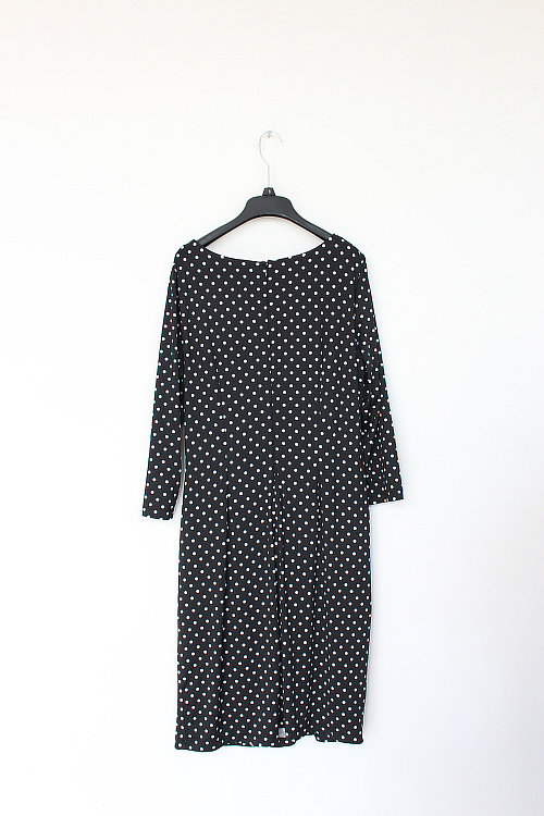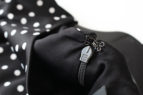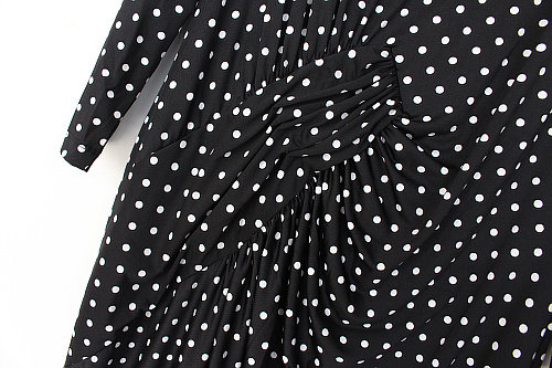 Забор 80151AP Эффективное классическое точечное печатное расщепление в рукаве с плиссированным круглым платьем для шеи