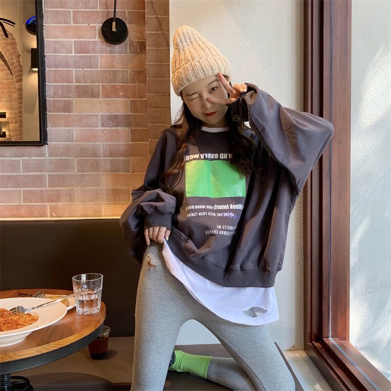Осенняя толстовка, ретро комплект для отдыха с круглым воротником, куртка, коллекция 2022, в корейском стиле, оверсайз