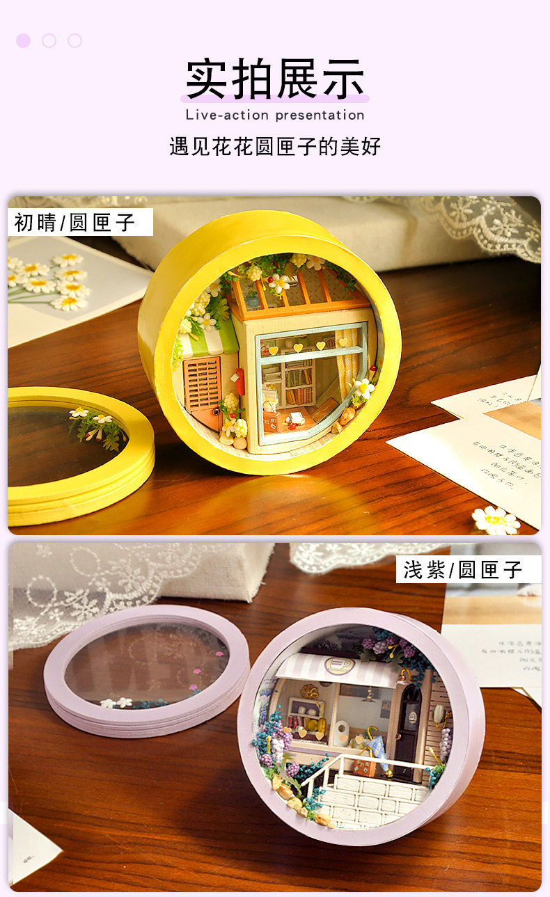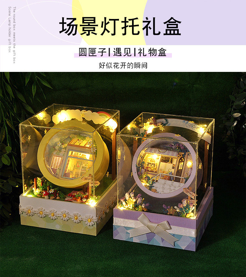 - [Стиль освещения защиты от пыли] Рождественская круглая коробка + клей для инструментов + светодиодный свет + защита от пыли.