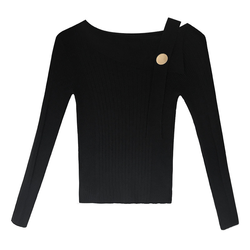 Черный свитер, трикотажный приталенный базовый приятный телу лонгслив