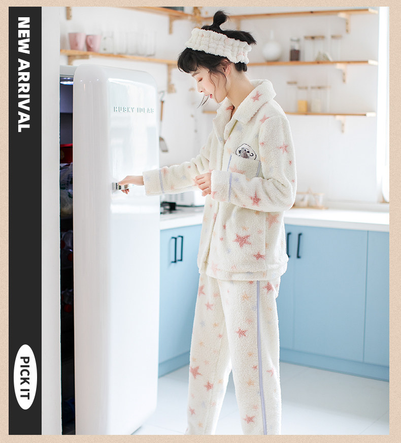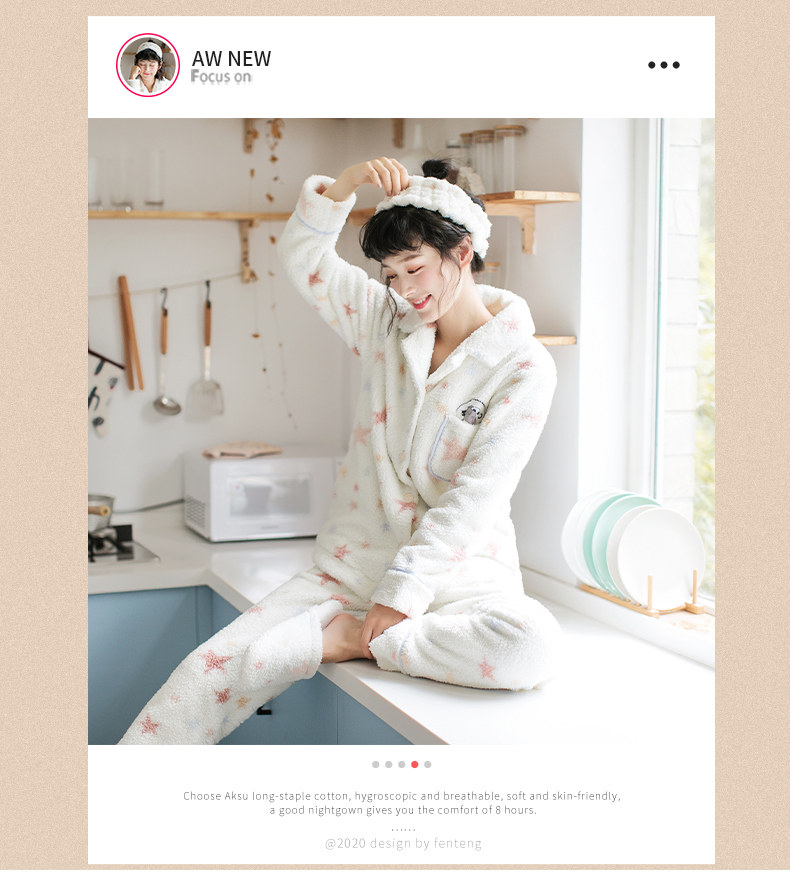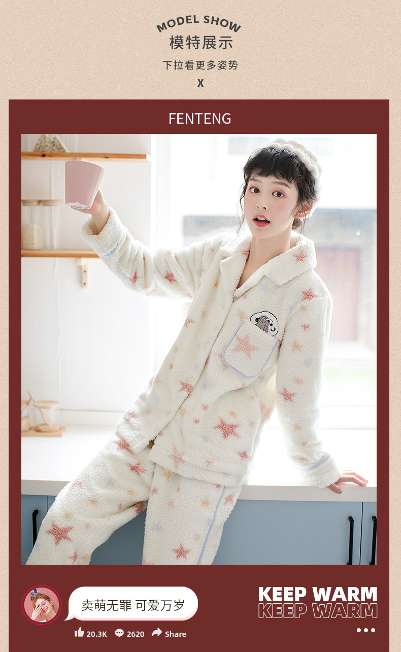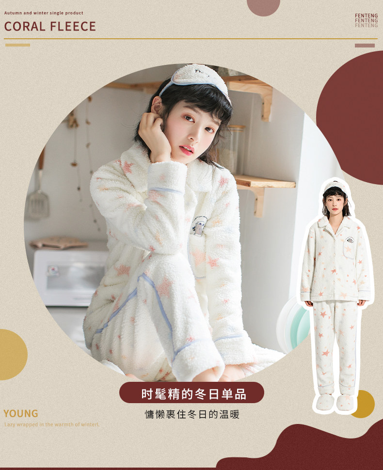 芬腾 Коралловая бархатная демисезонная фланелевая пижама, милый удерживающий тепло комплект, увеличенная толщина