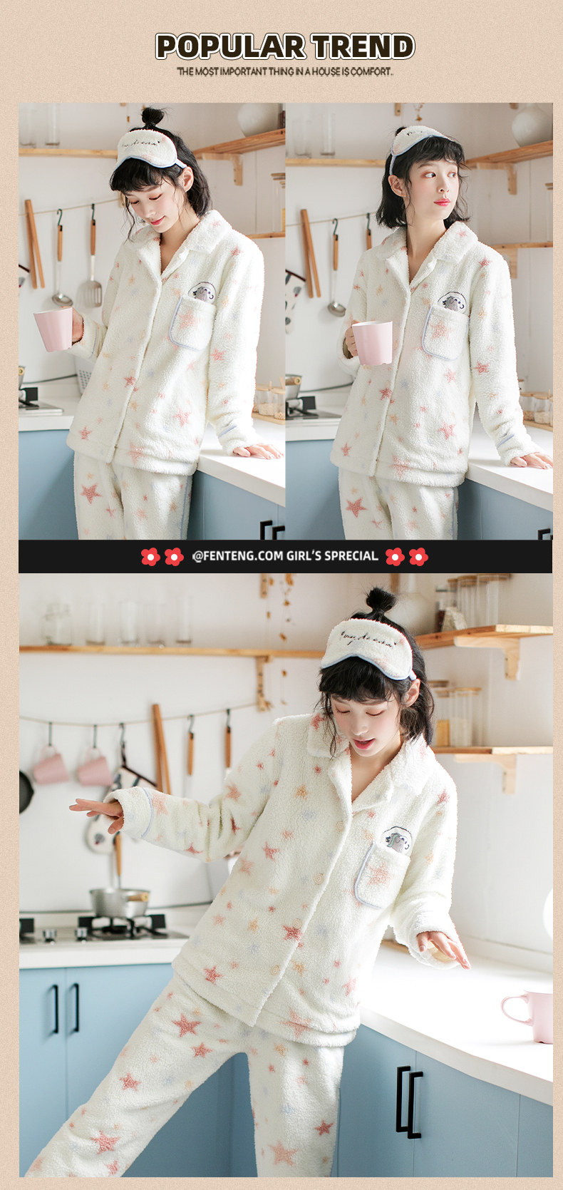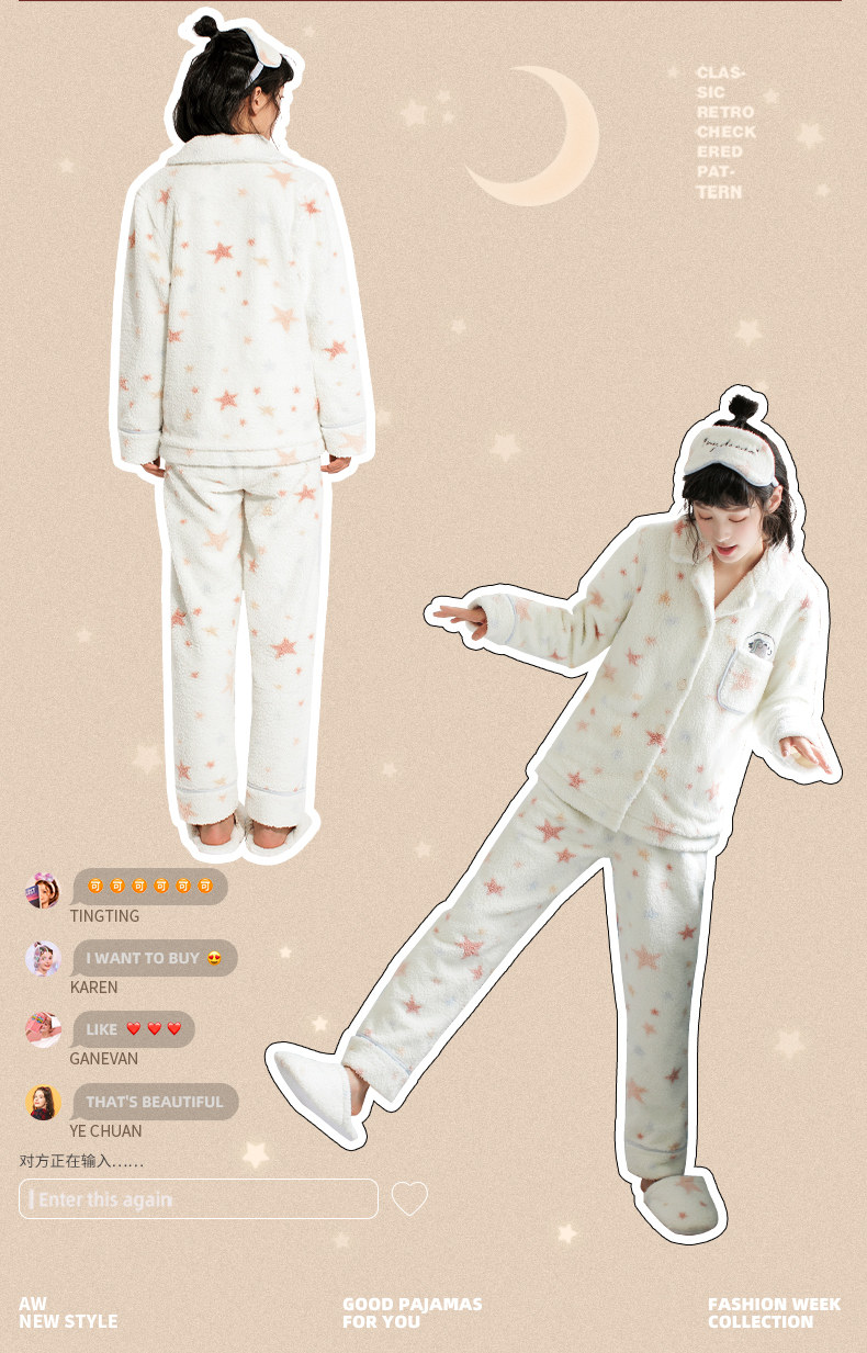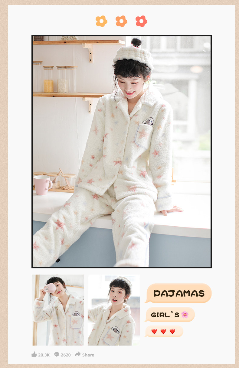 芬腾 Коралловая бархатная демисезонная фланелевая пижама, милый удерживающий тепло комплект, увеличенная толщина