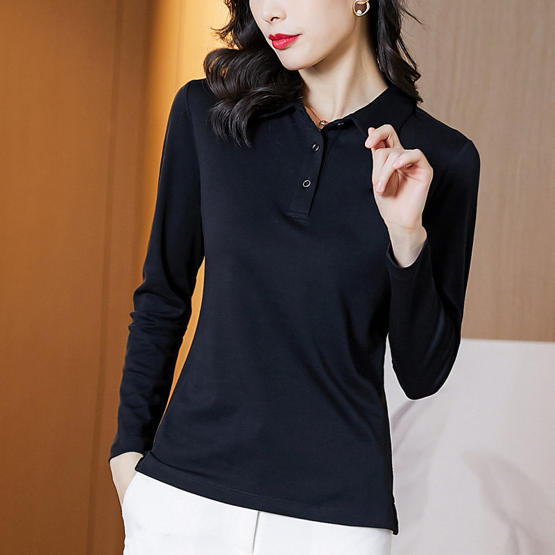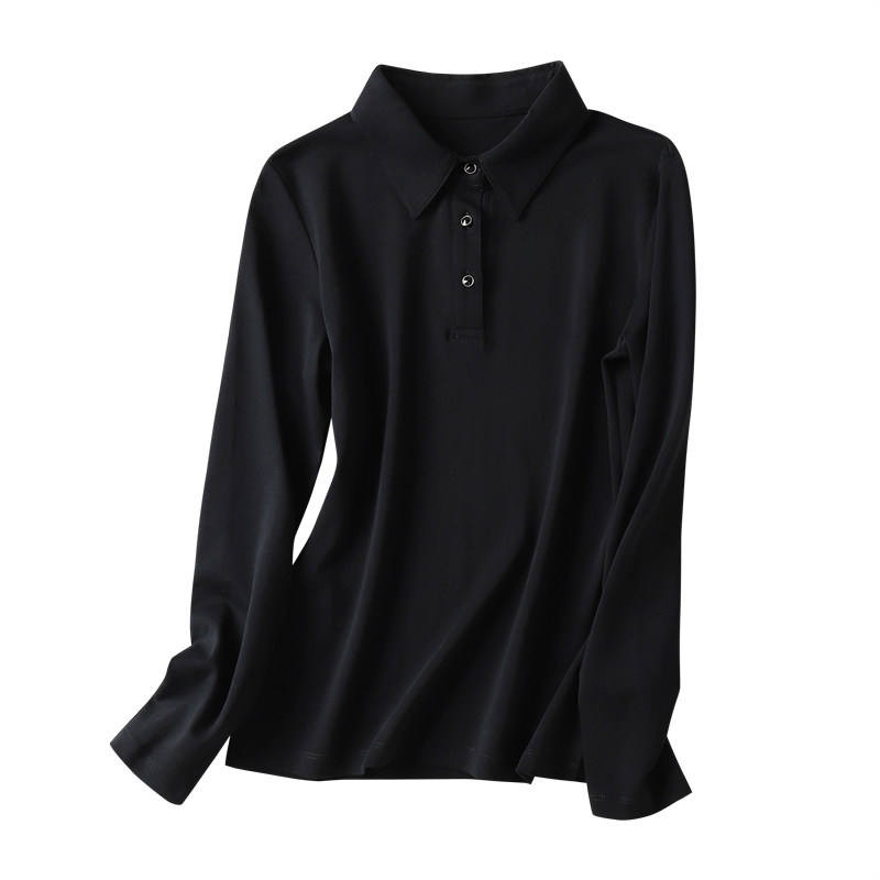 Черный хлопковый лонгслив, весенняя базовая приятная телу тонкая футболка polo, коллекция 2023