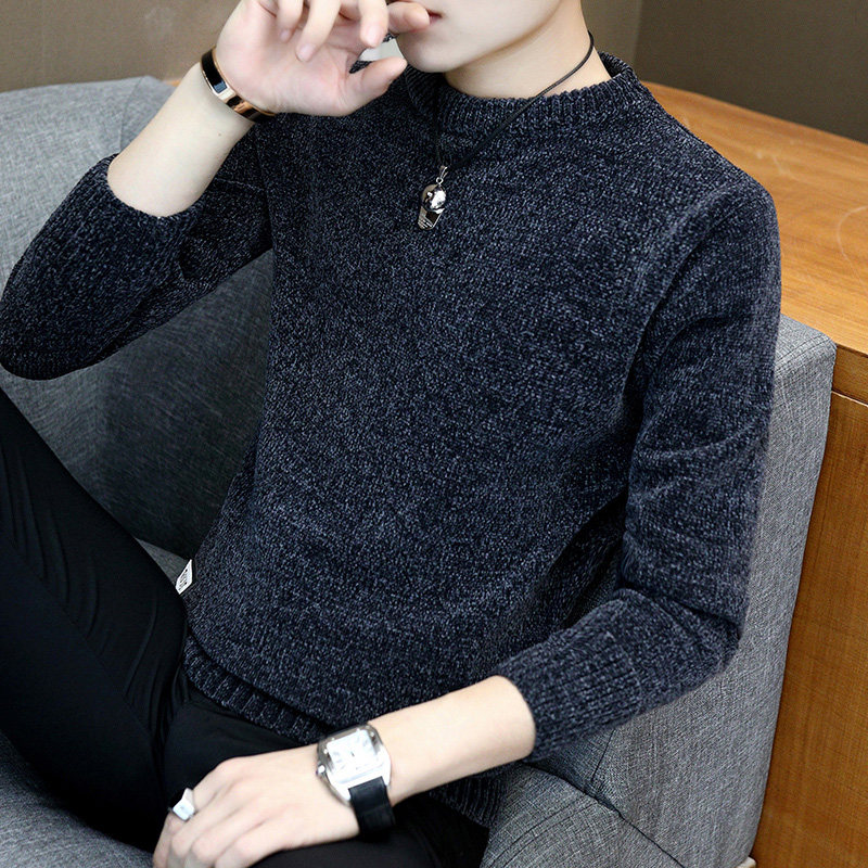 Осенний демисезонный свитер, мужская трендовая трикотажная шерстяная рубашка с круглым воротником, в корейском стиле