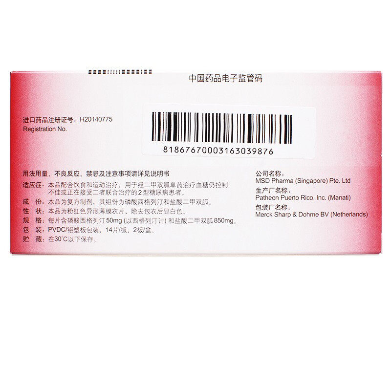 捷诺达 Сигерин Двойной -Дал -Тадпор IIIIII50 мг/850 мг*28 таблетки/коробка 2 Аутентичная гарантия гипергликемии, жажда, мульти -урок
