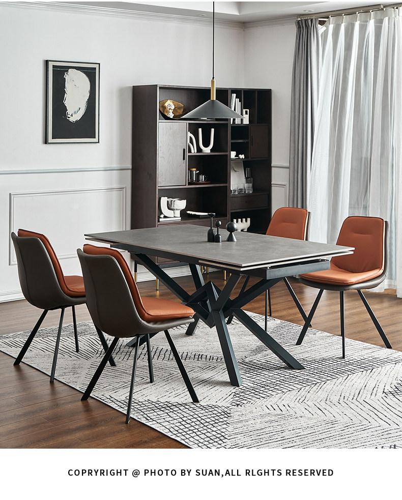 伏尔加 丨 Современная простота рок -тарелка Телескопический обеденный стол 丨 Длинная квадратная дом маленькая квартира 2022 Новая высокая
