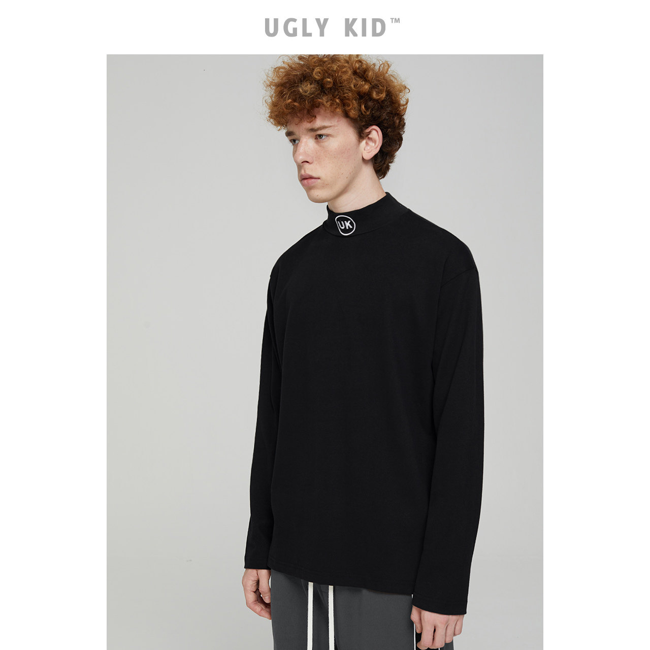 Лонгслив, базовые приятные телу джинсы с начесом подходит для мужчин и женщин, высокий воротник, с вышивкой