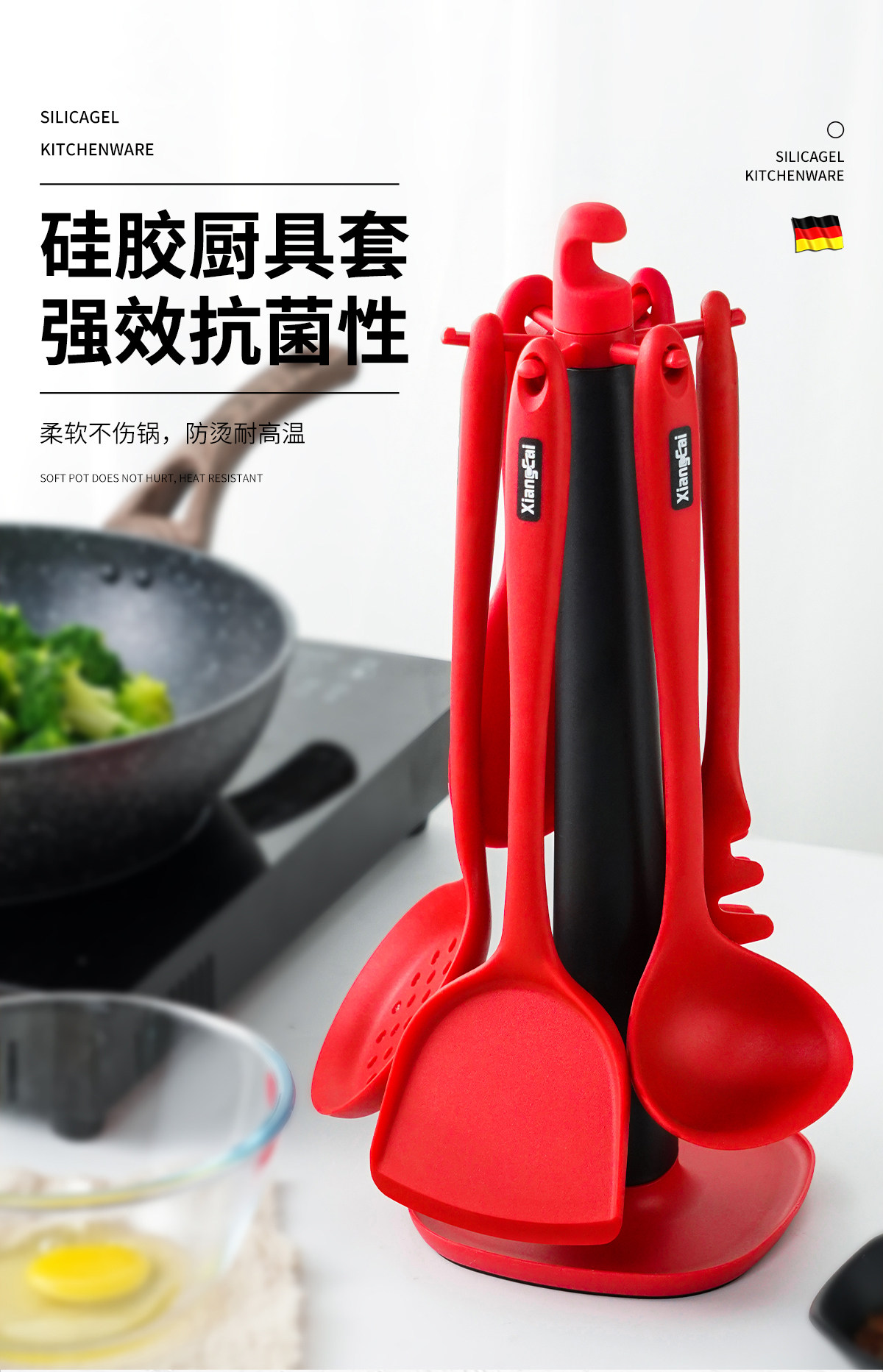 Незащитный горшок с силиконовой лопатой Дом с жареными устойчивостью к лопату Высокая температура силиконовая шпатель