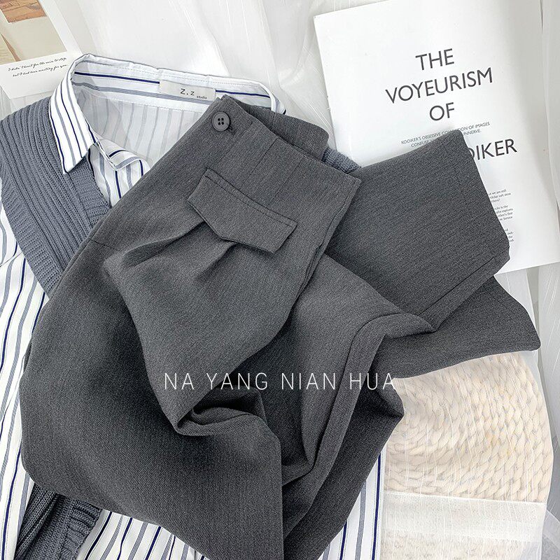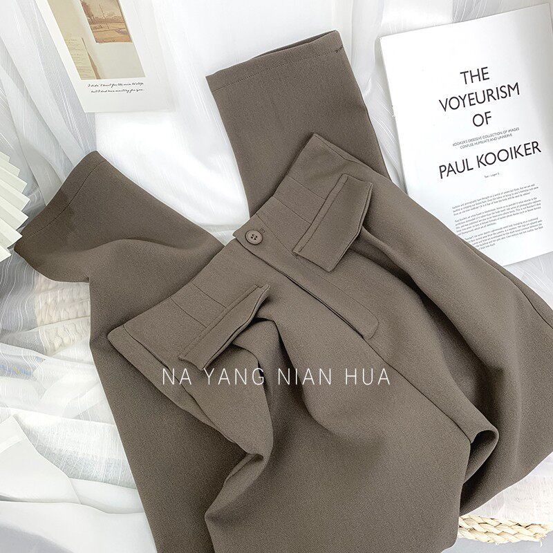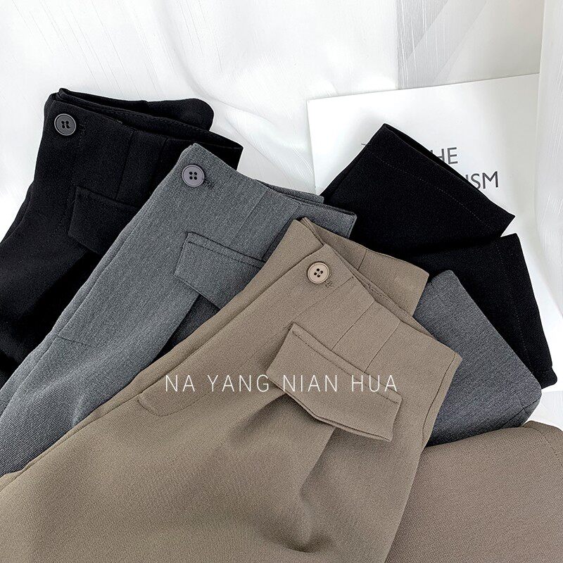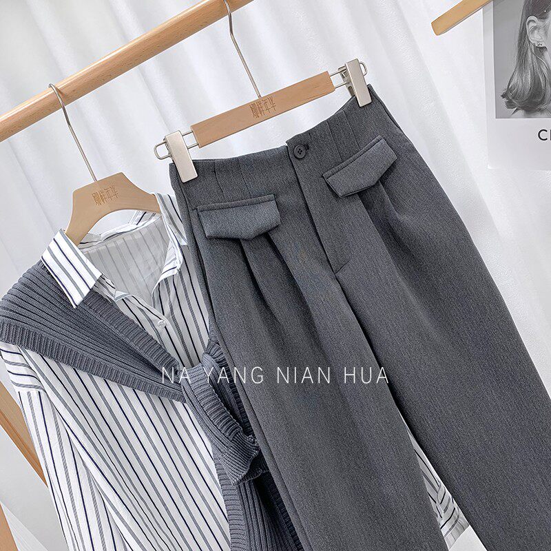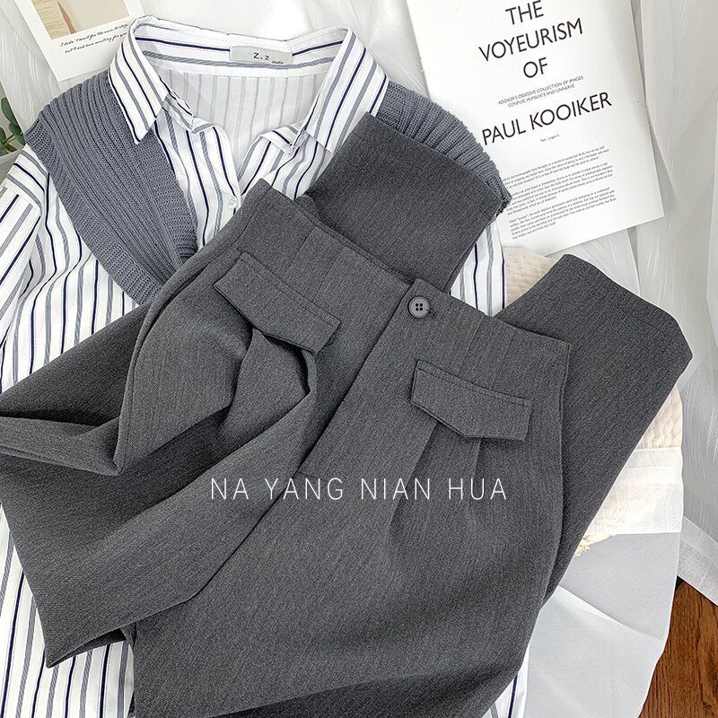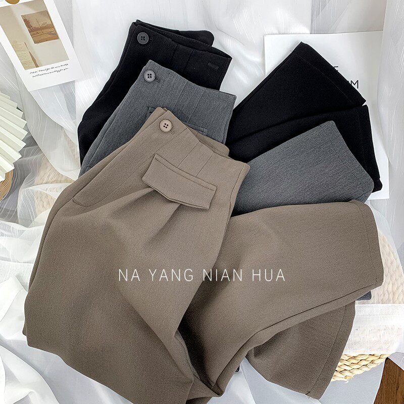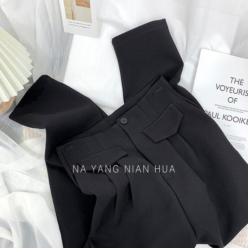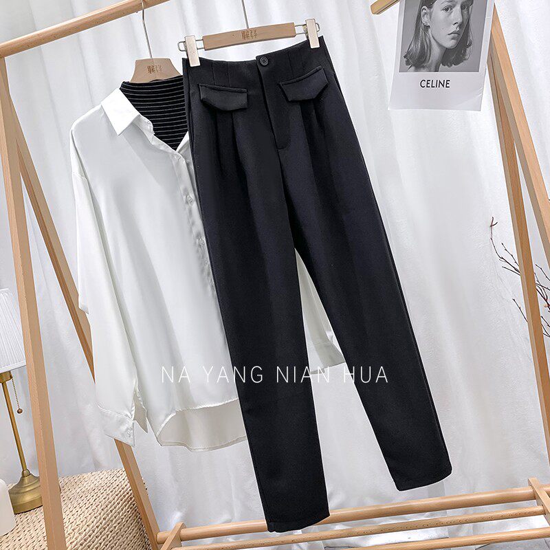 Приталенный костюм, демисезонные штаны, леггинсы, повседневные брюки, высокая талия, свободный прямой крой