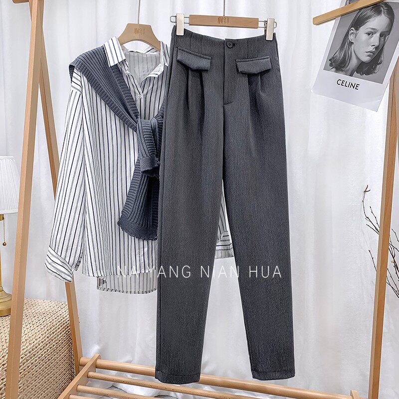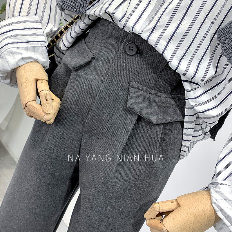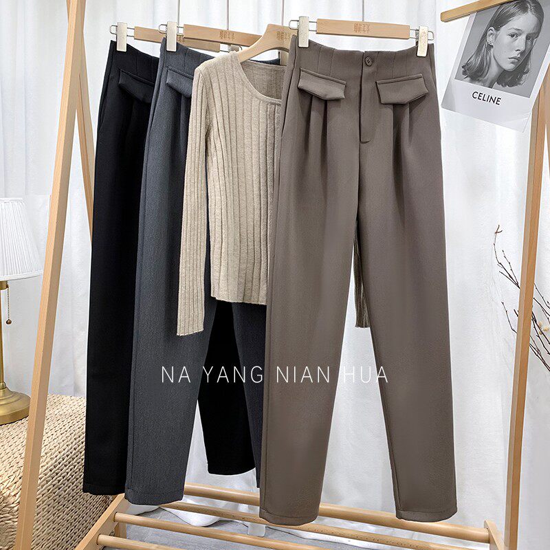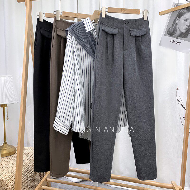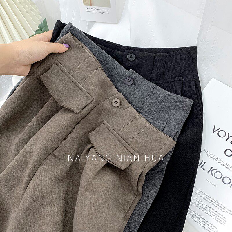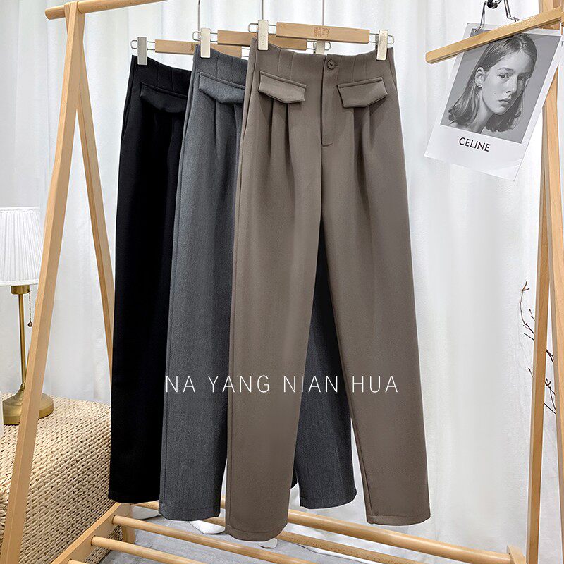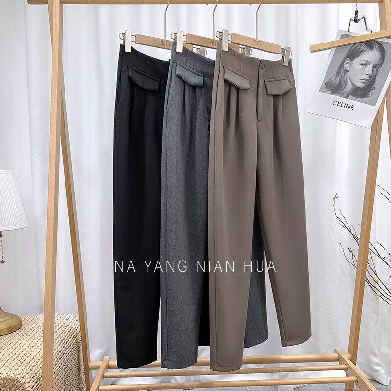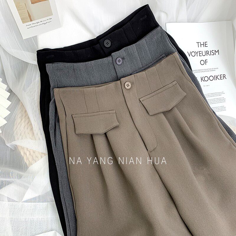Приталенный костюм, демисезонные штаны, леггинсы, повседневные брюки, высокая талия, свободный прямой крой