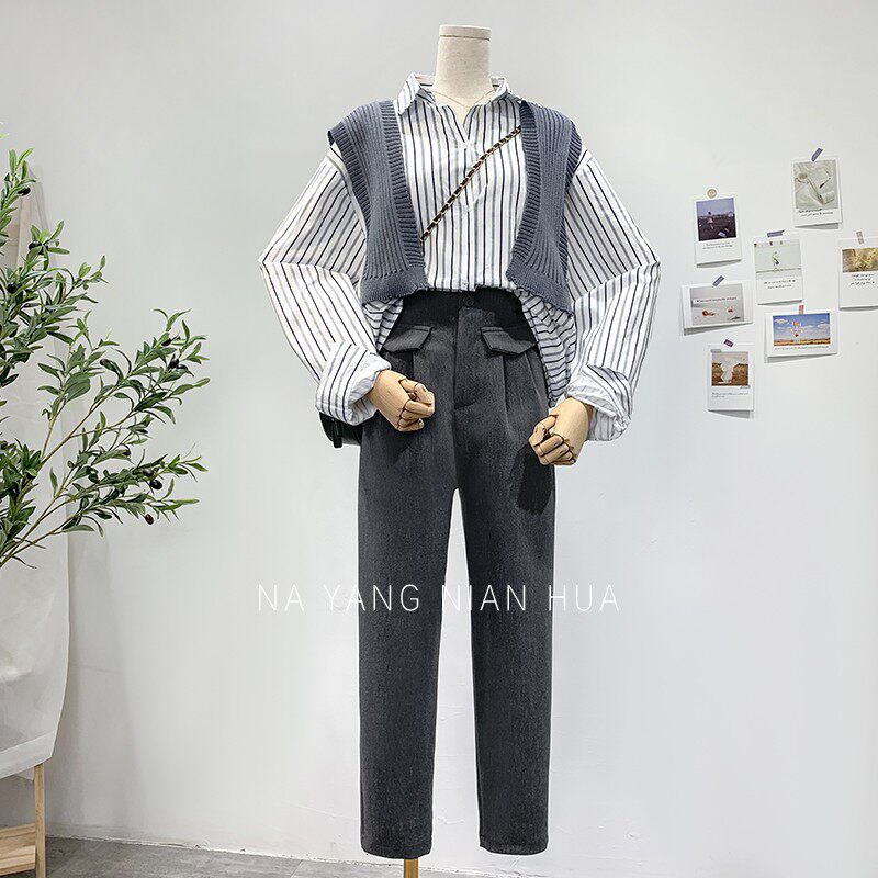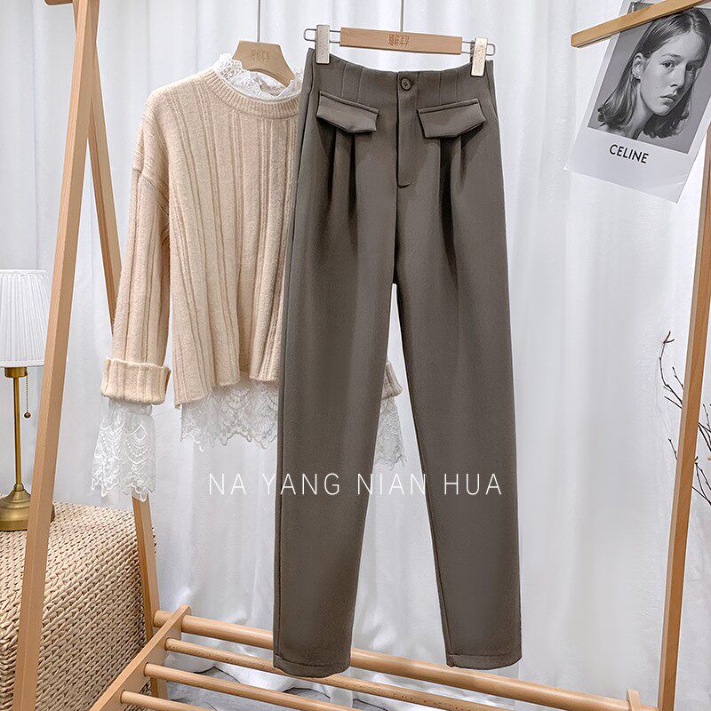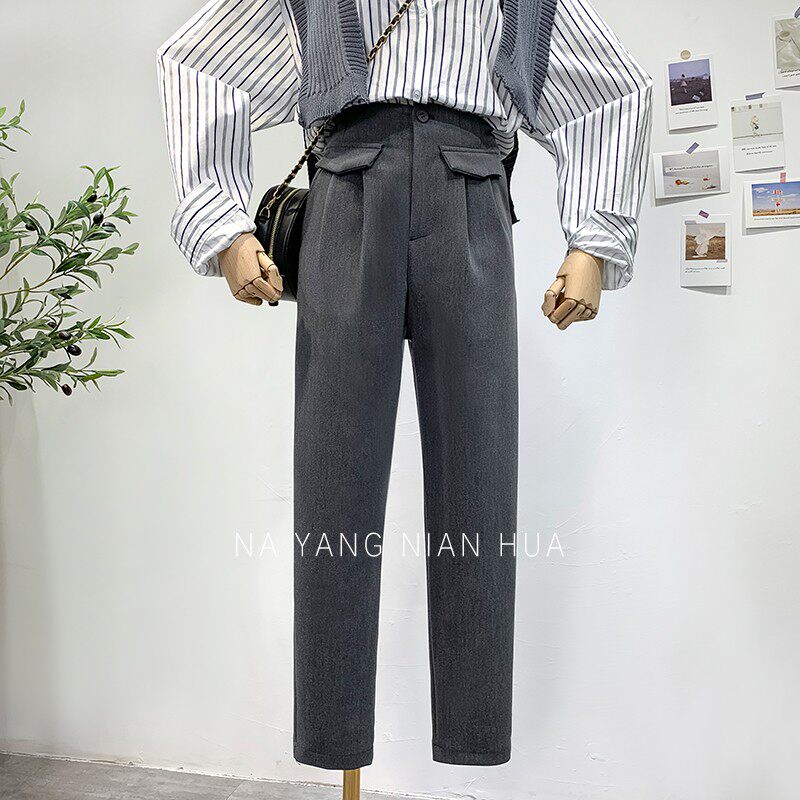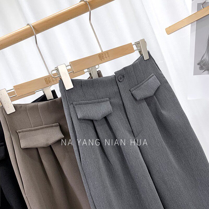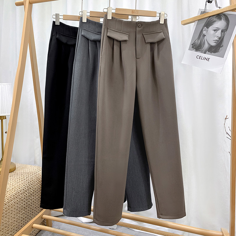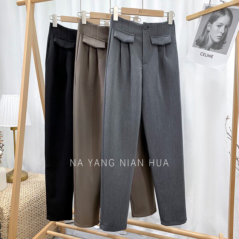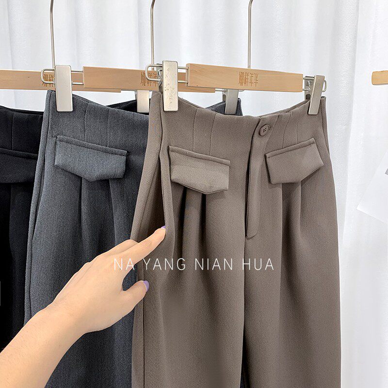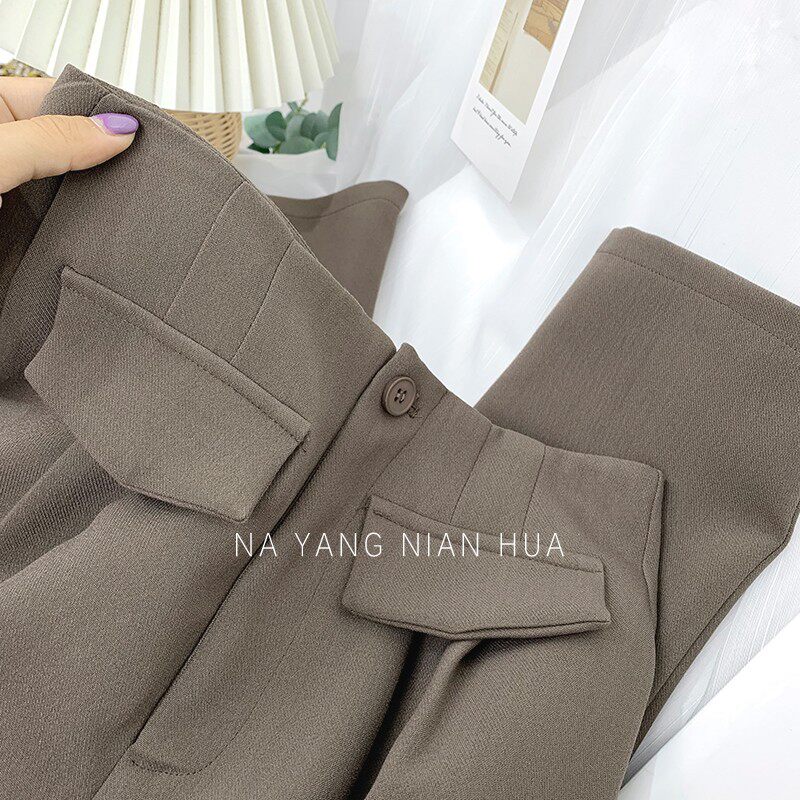 Приталенный костюм, демисезонные штаны, леггинсы, повседневные брюки, высокая талия, свободный прямой крой