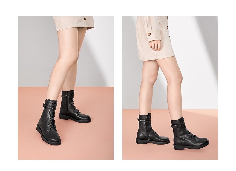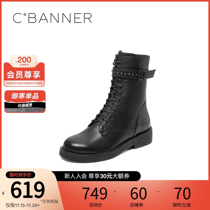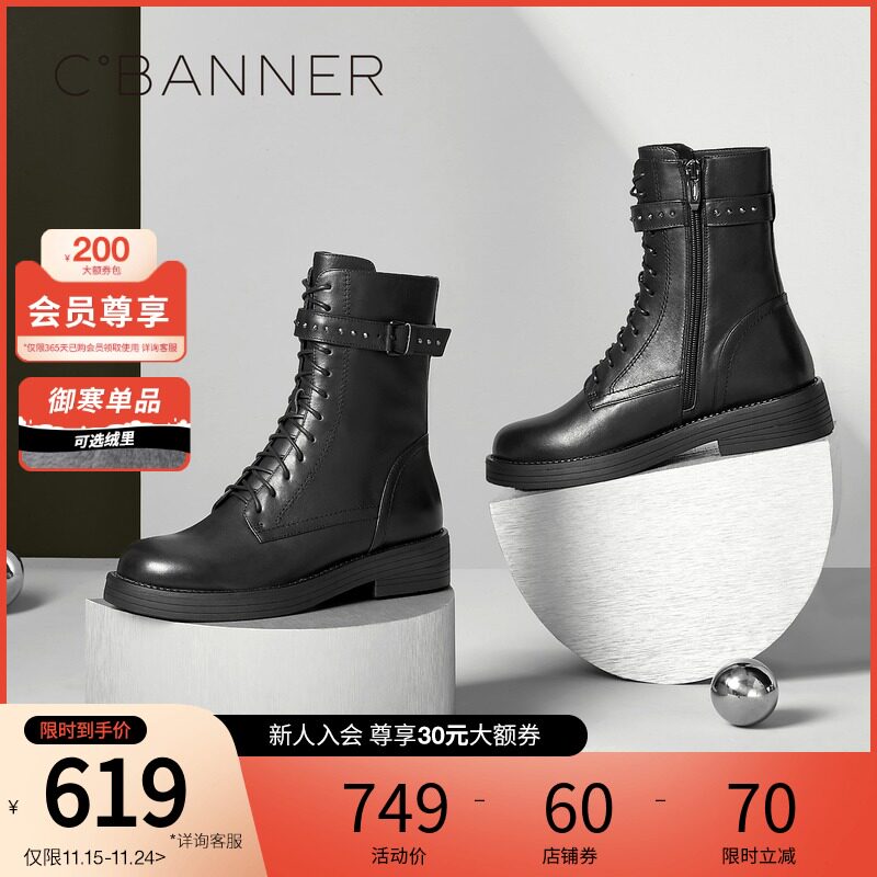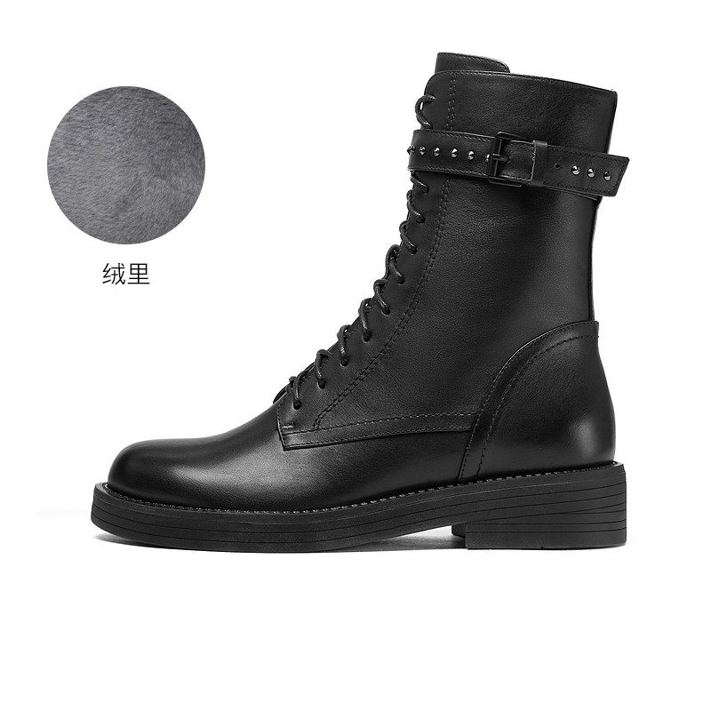 Женские ботинки Qianbaidu на осень и зиму, а также бархатные ботинки на плоской подошве в британском стиле, красивые и классные ботинки «Мартин» из воловьей кожи, узкие ботинки, высокие мотоциклетные ботинки