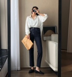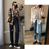 Эластичные приталенные джинсы, штаны, свободный прямой крой, высокая талия