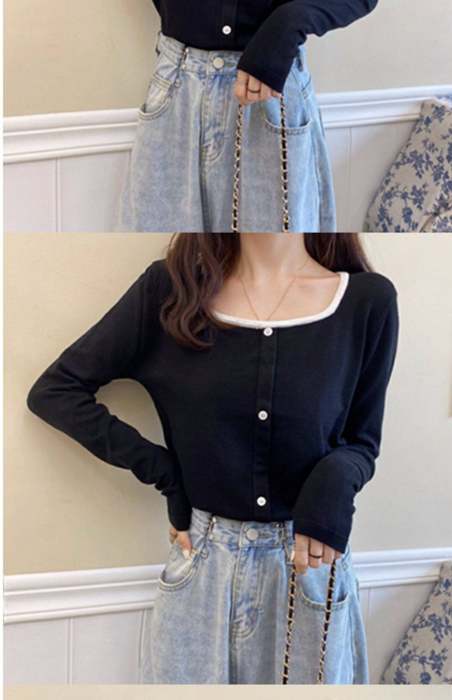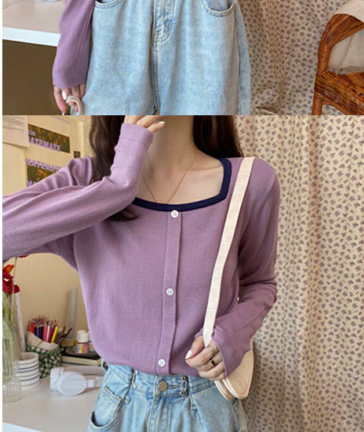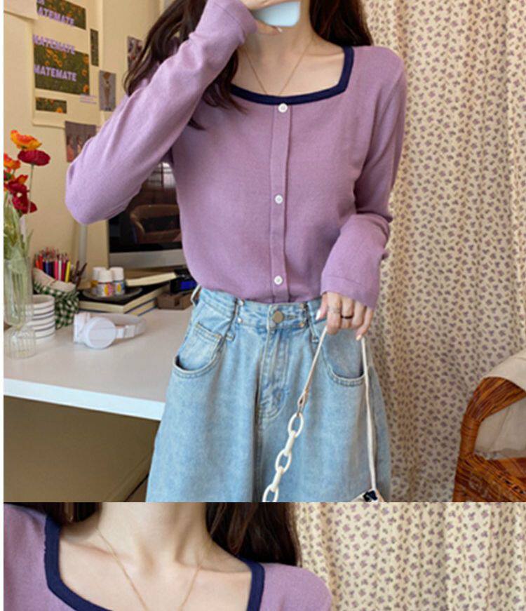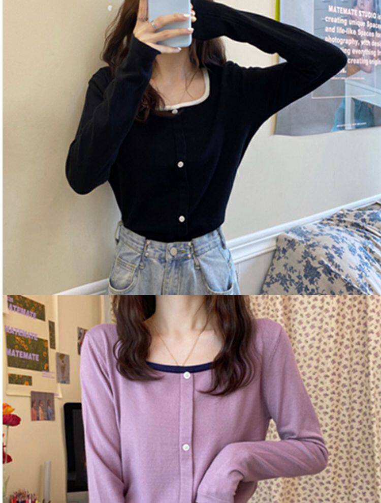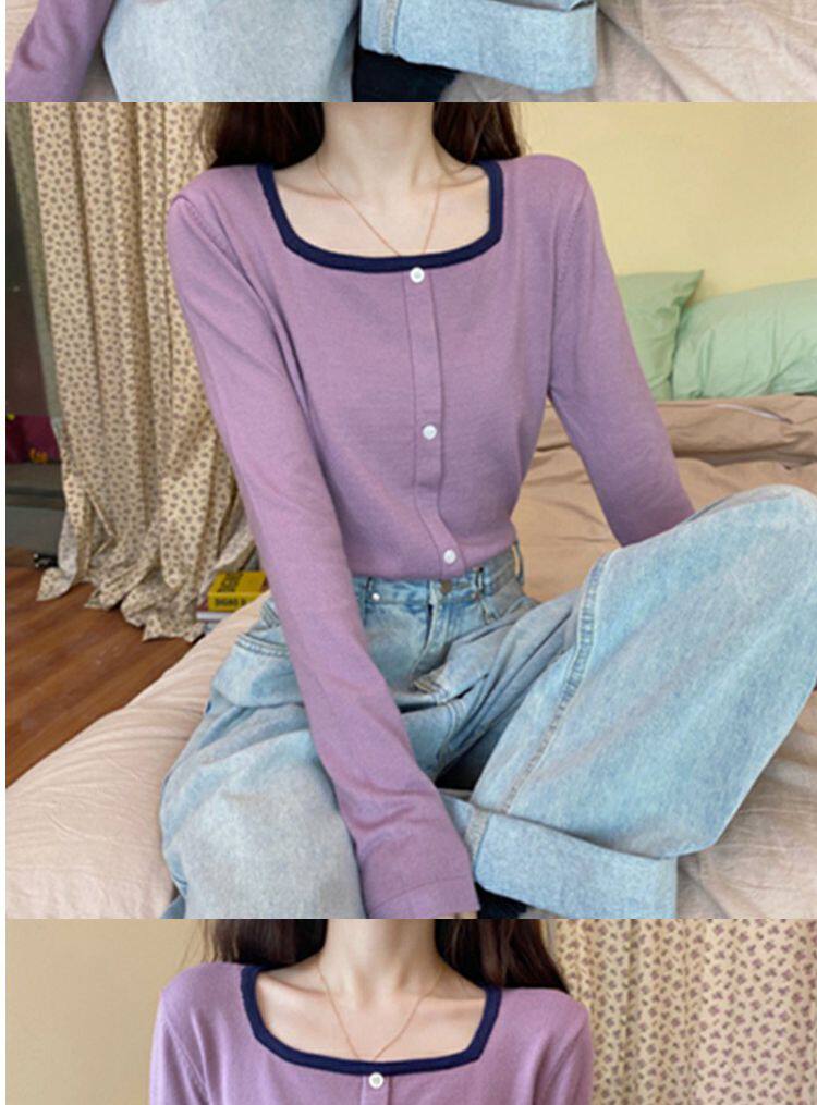 Лонгслив, базовый приятный телу короткий свитер, штаны, футболка, оверсайз, квадратный вырез, высокая талия