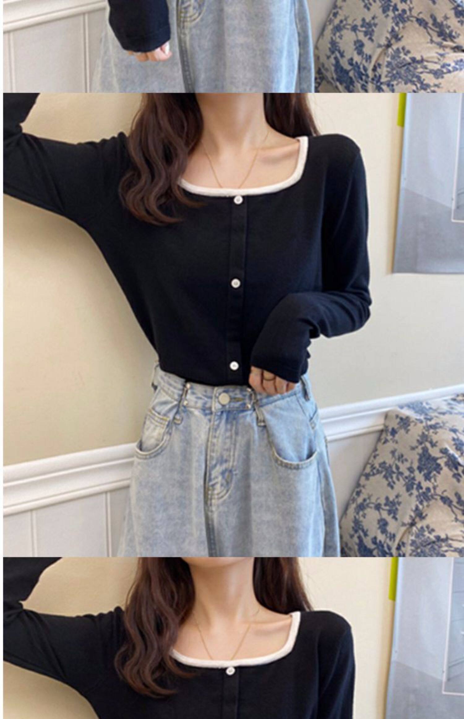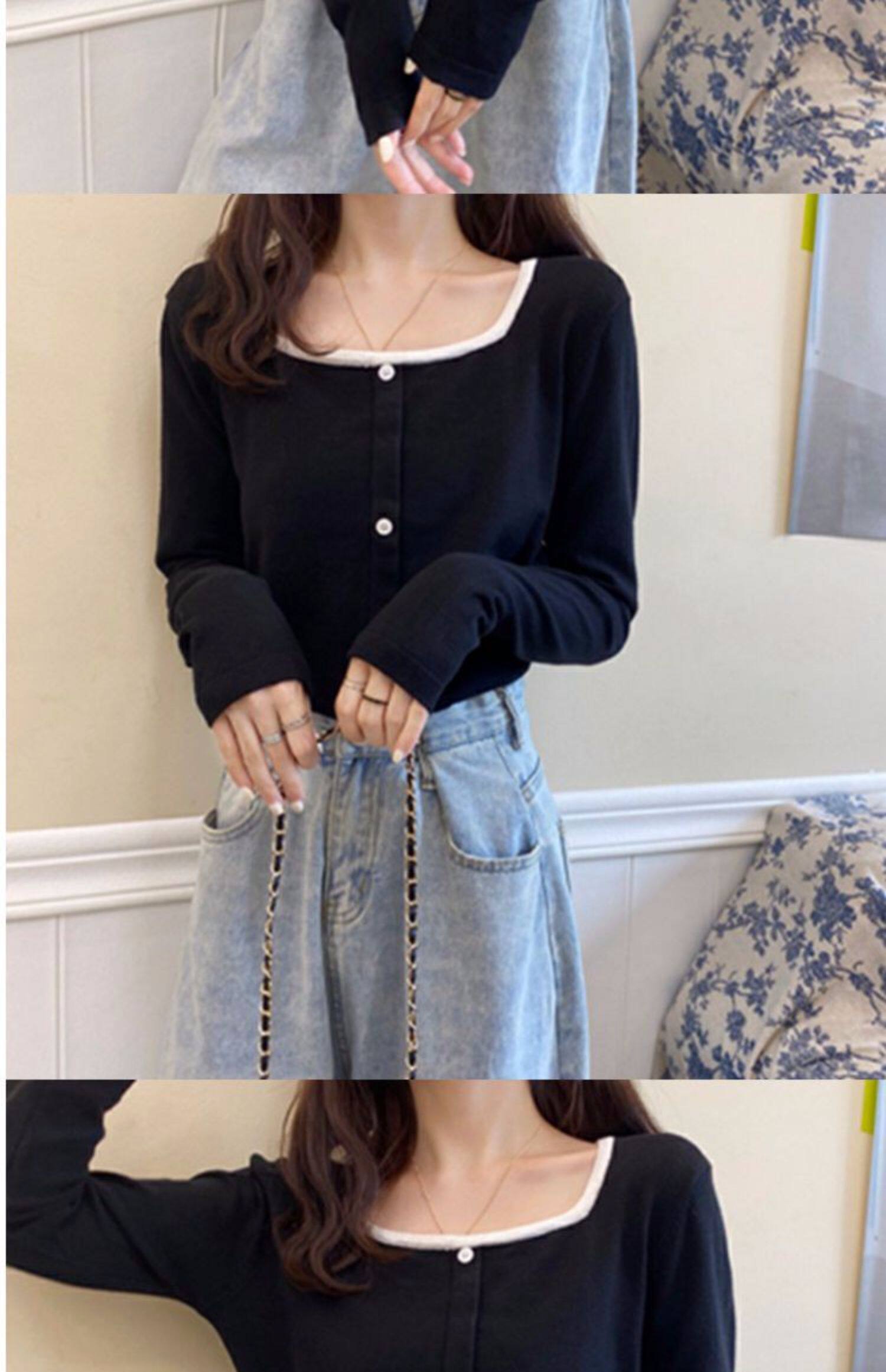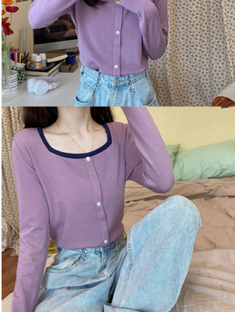 Лонгслив, базовый приятный телу короткий свитер, штаны, футболка, оверсайз, квадратный вырез, высокая талия