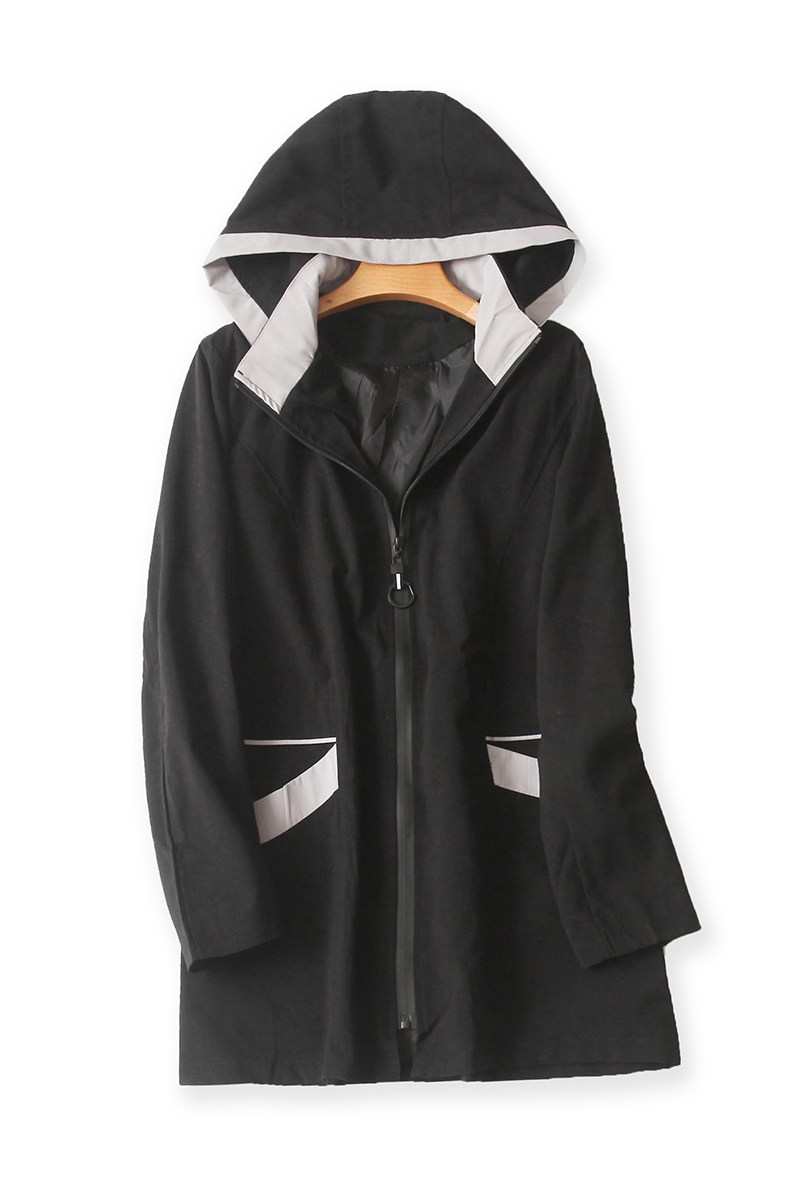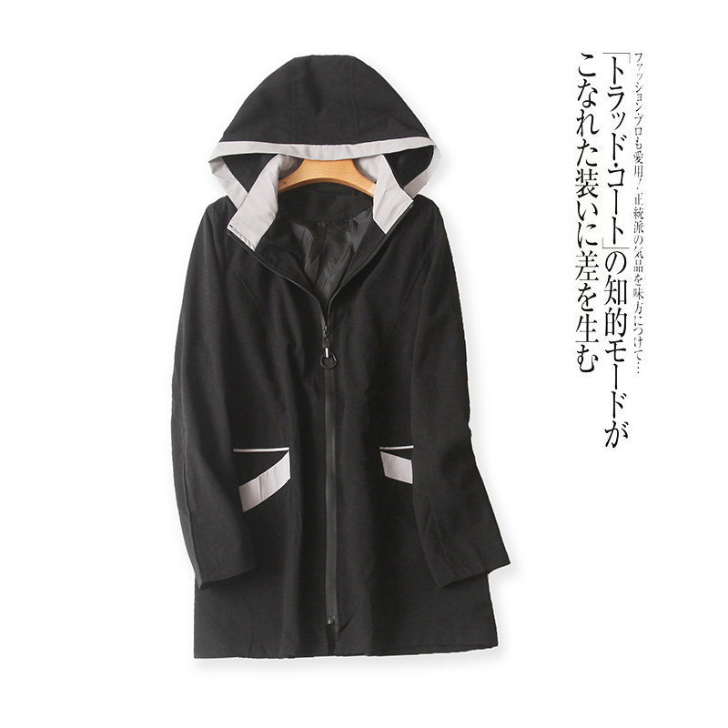 (Трансграничная торговля), демисезонный плащ, куртка с капюшоном с молнией, большой размер, длина миди, в корейском стиле