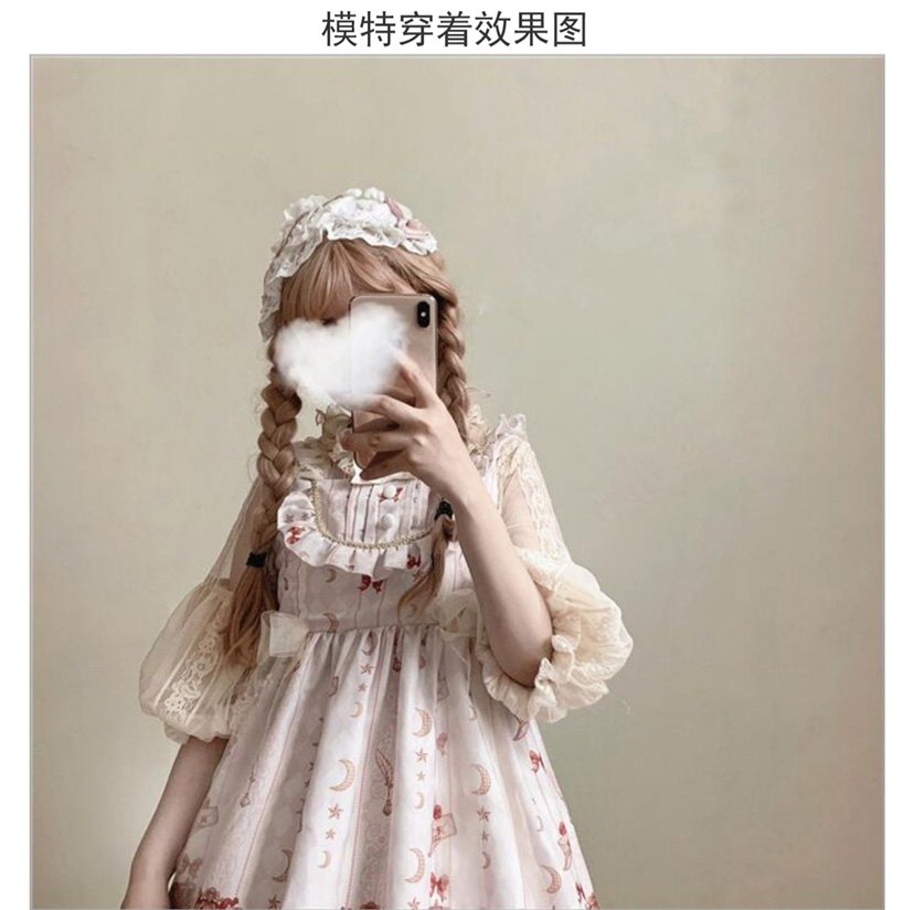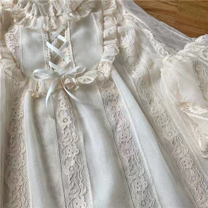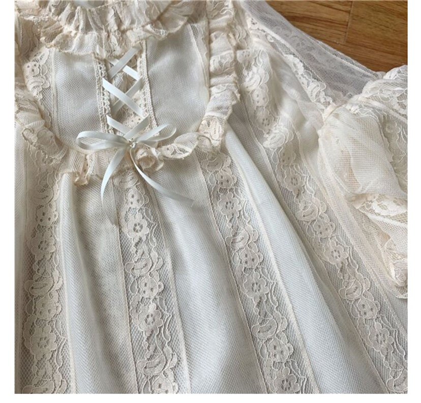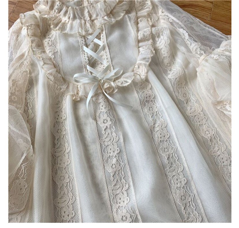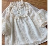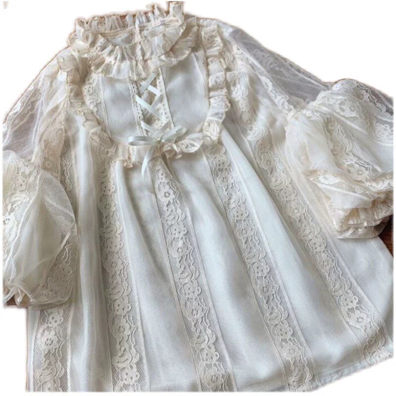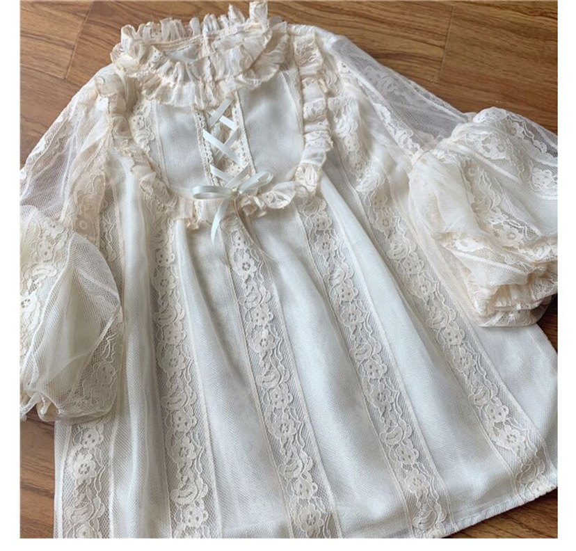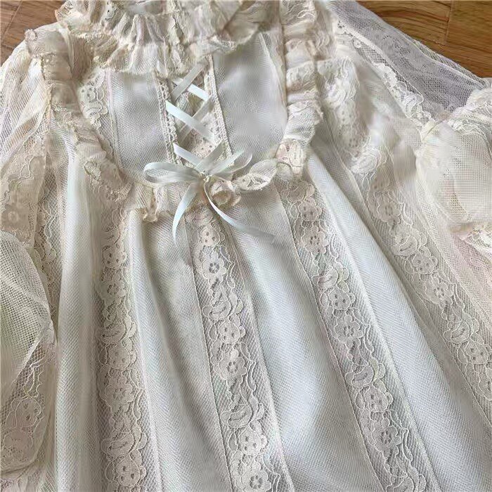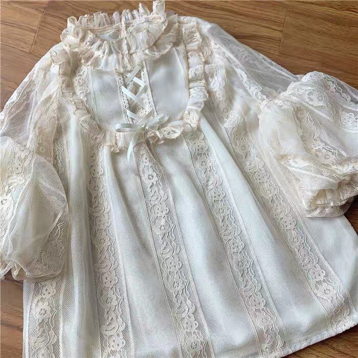 Оригинальная кремовая изысканная кружевная рубашка, базовый ремень, стиль Лолита, рукава фонарики