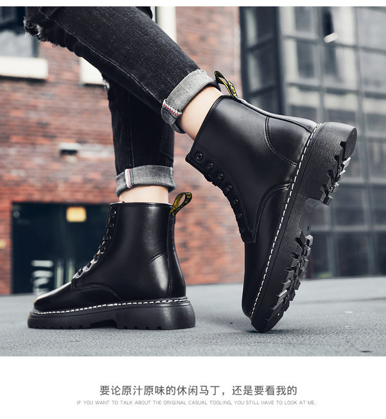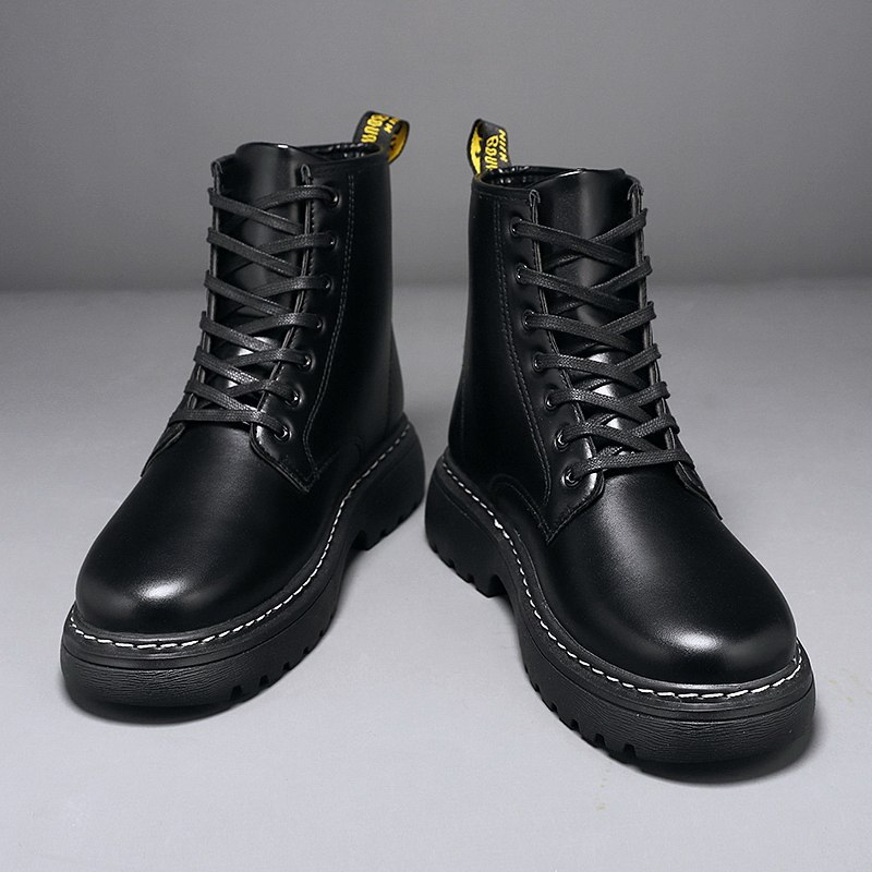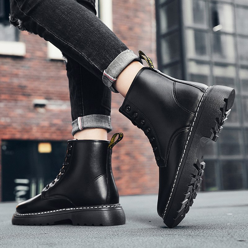 Martens, универсальные черные высокие короткие сапоги в английском стиле для отдыха для кожаной обуви, осенние, в британском стиле, в корейском стиле