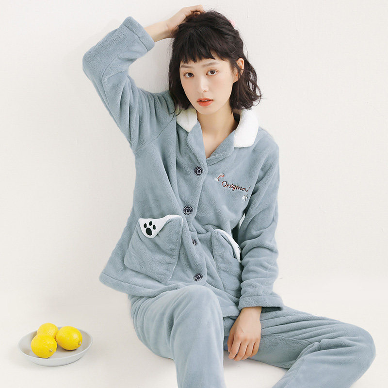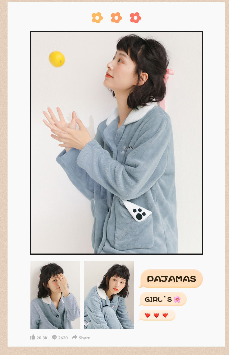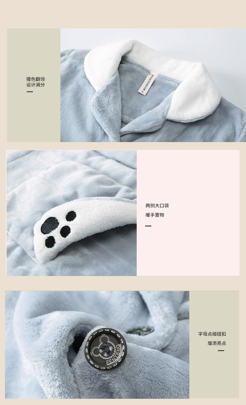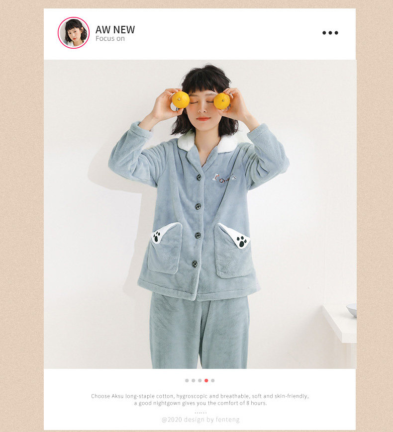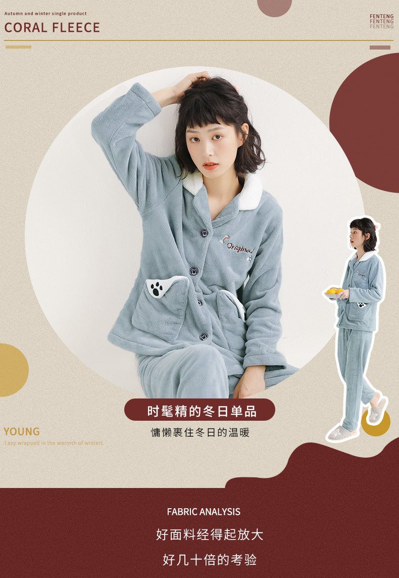 芬腾 Коралловая бархатная демисезонная пижама, утепленный фланелевый комплект, демисезонный лонгслив, в корейском стиле