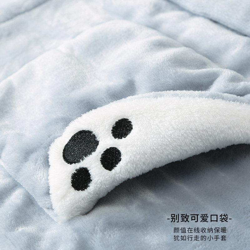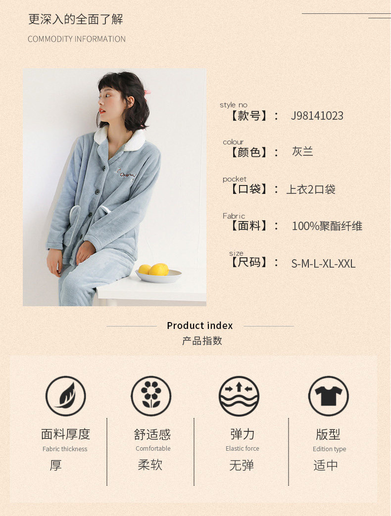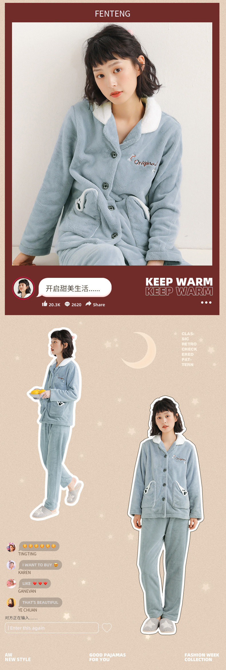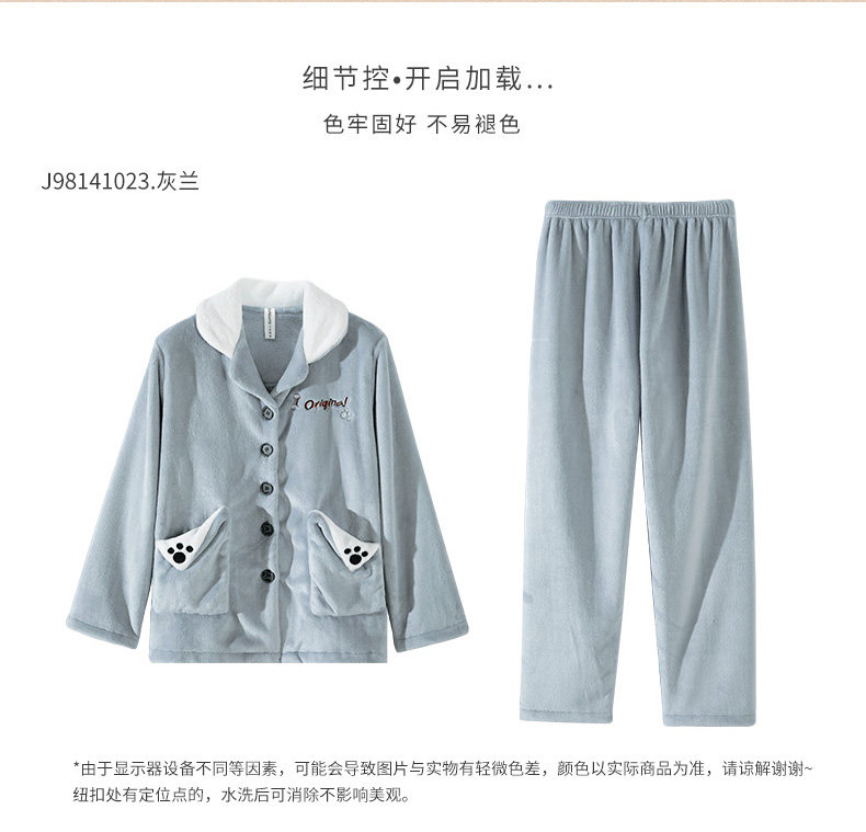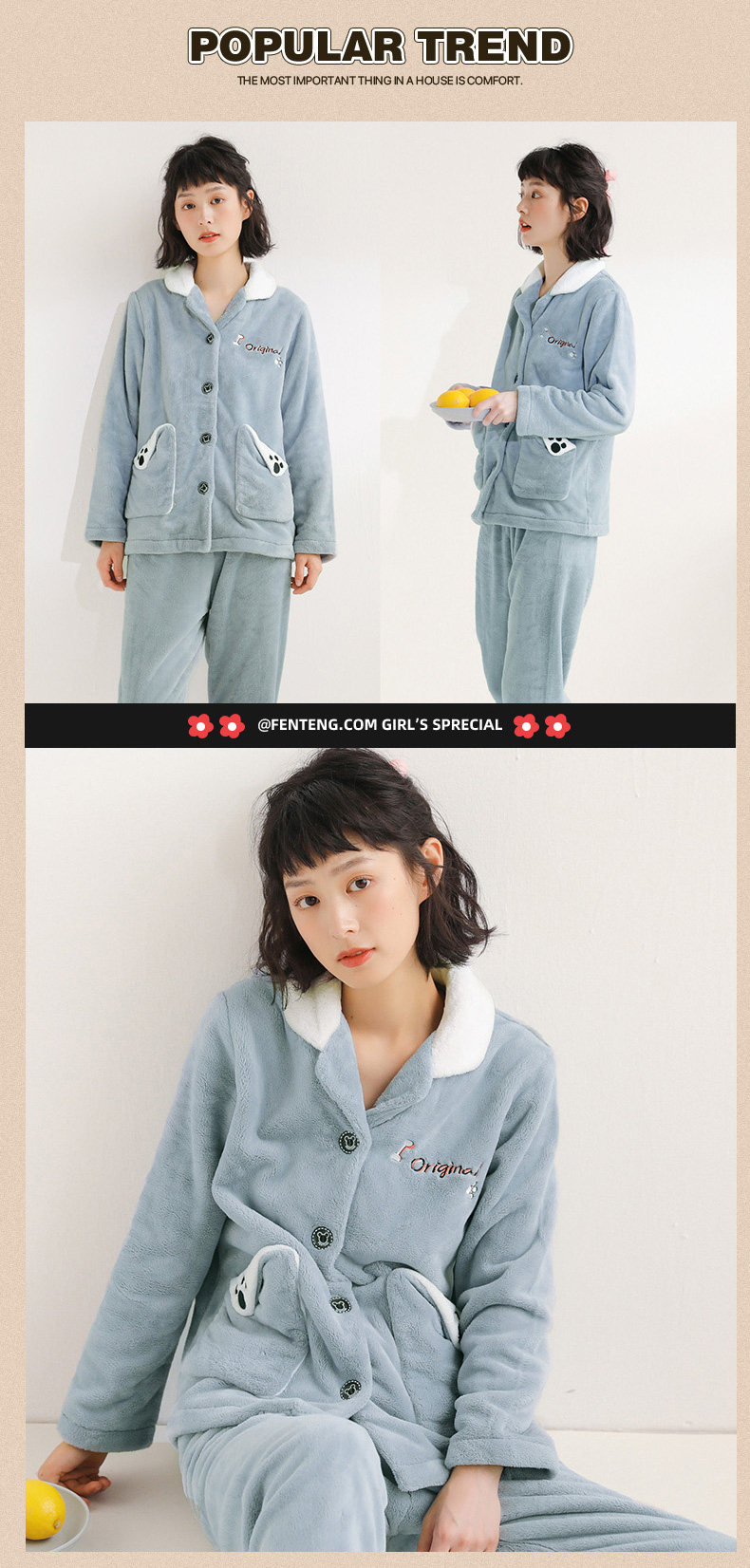 芬腾 Коралловая бархатная демисезонная пижама, утепленный фланелевый комплект, демисезонный лонгслив, в корейском стиле