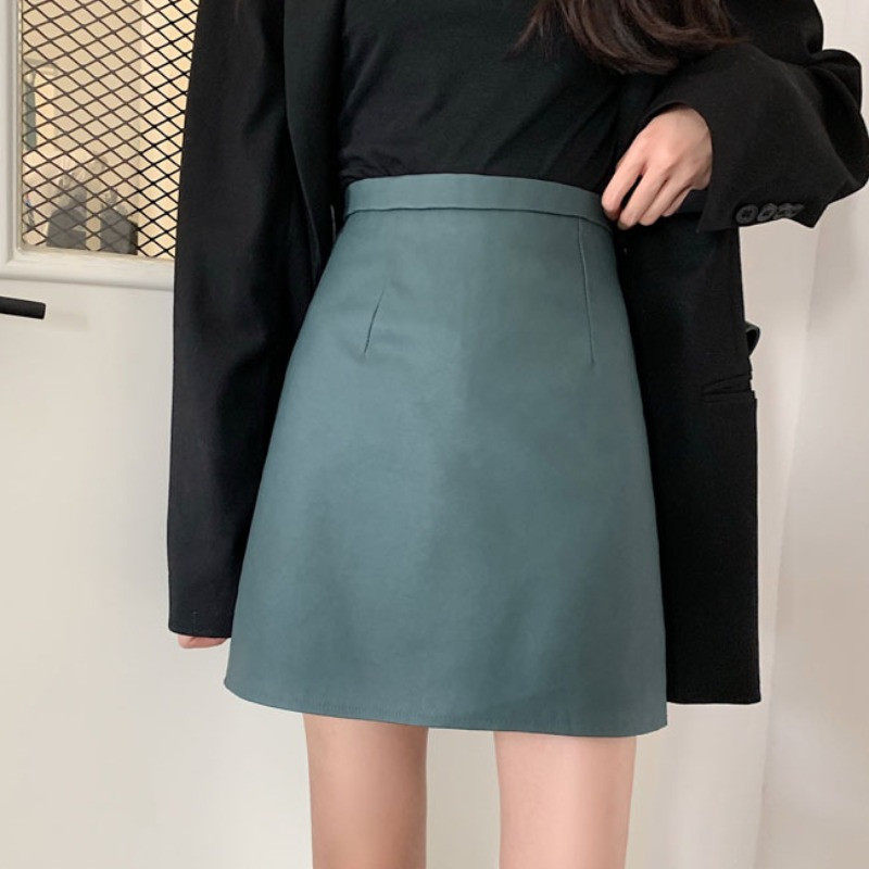Демисезонная юбка, цветная полиуретановая мини-юбка, большой размер, А-силуэт, прикрывает попу