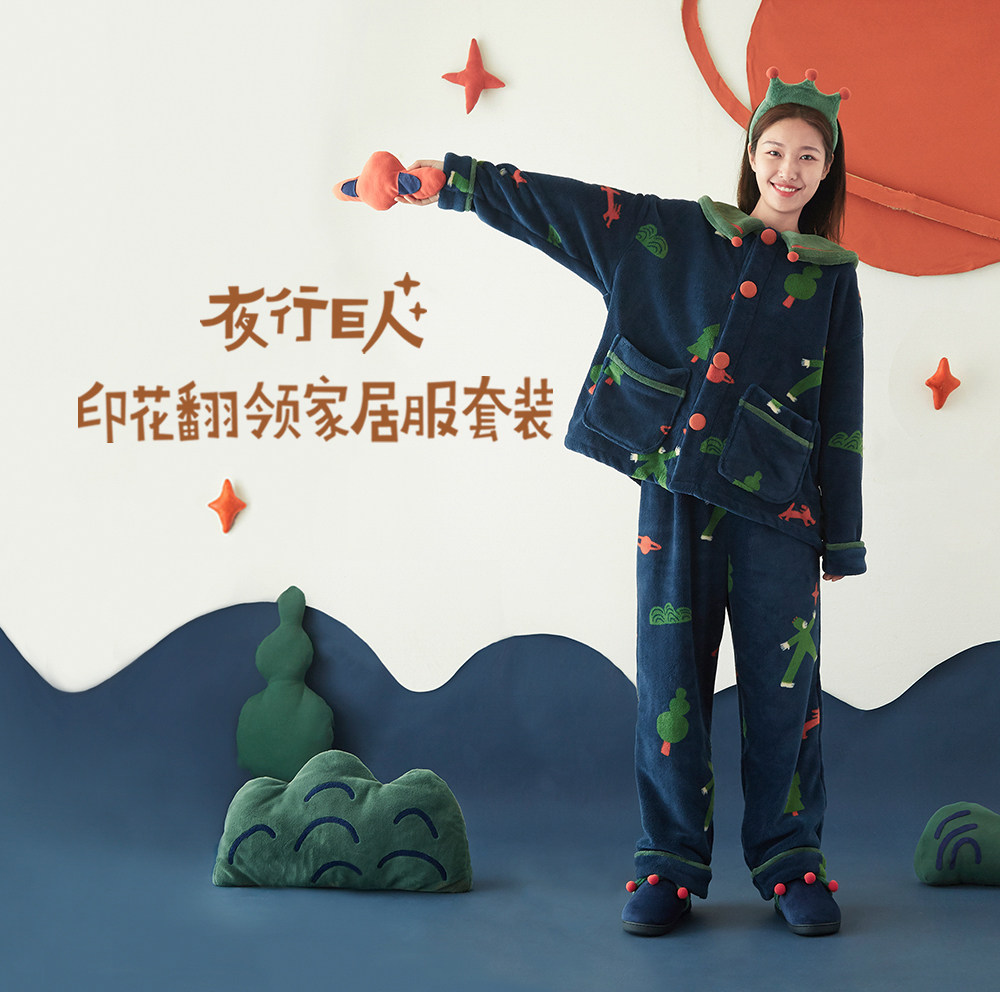 云朵工厂 Пижама, коралловый бархатный комплект, утепленный удерживающий тепло лонгслив, демисезонное термобелье