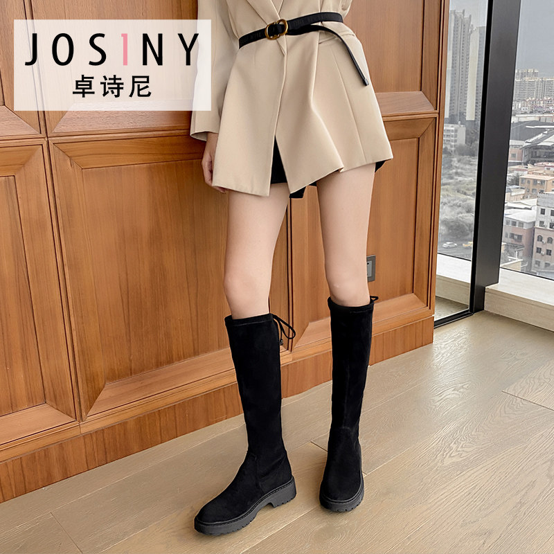 Замшевые зимние высокие сапоги, эластичные ботинки, коллекция 2021