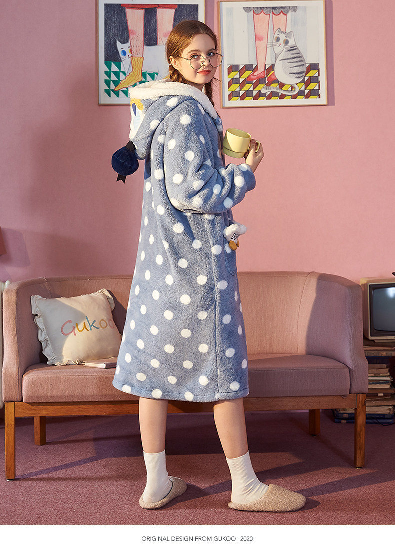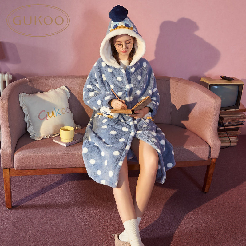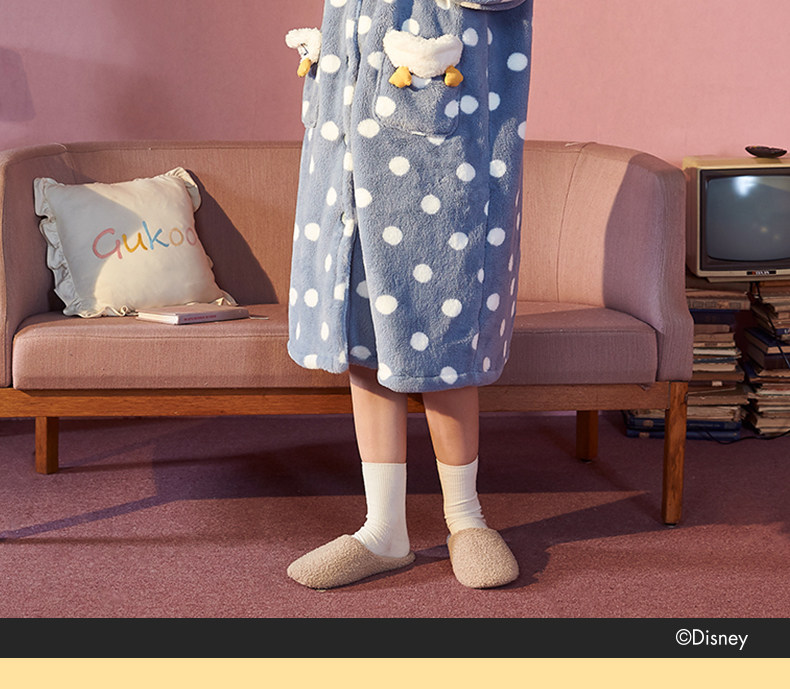 Gukoo/果壳 Дисней, демисезонная коралловая пижама, бархатный мультяшный банный халат
