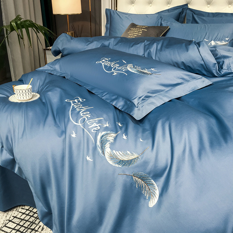 南极人 Хлопковый комплект, простыня, пододеяльник, легкий роскошный стиль, 4 предмета, простой и элегантный дизайн, с вышивкой
