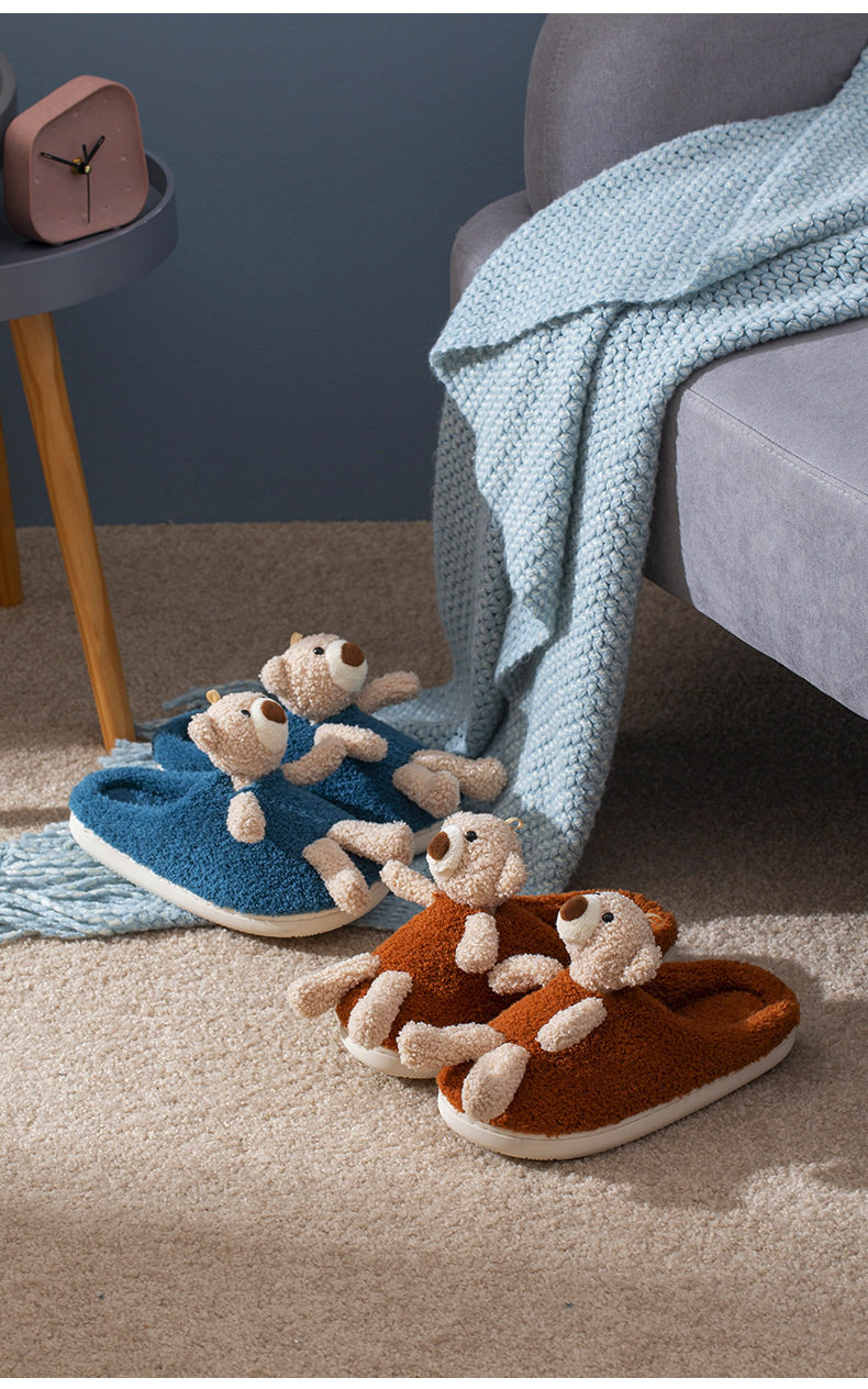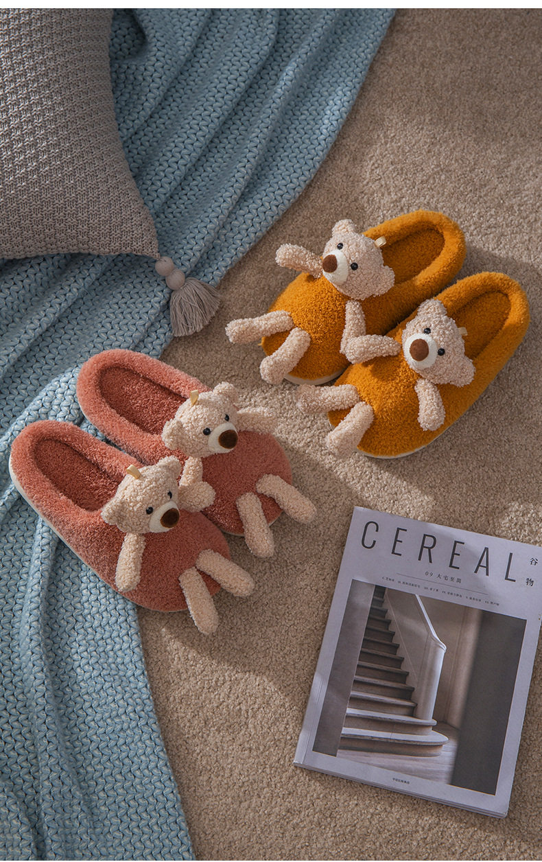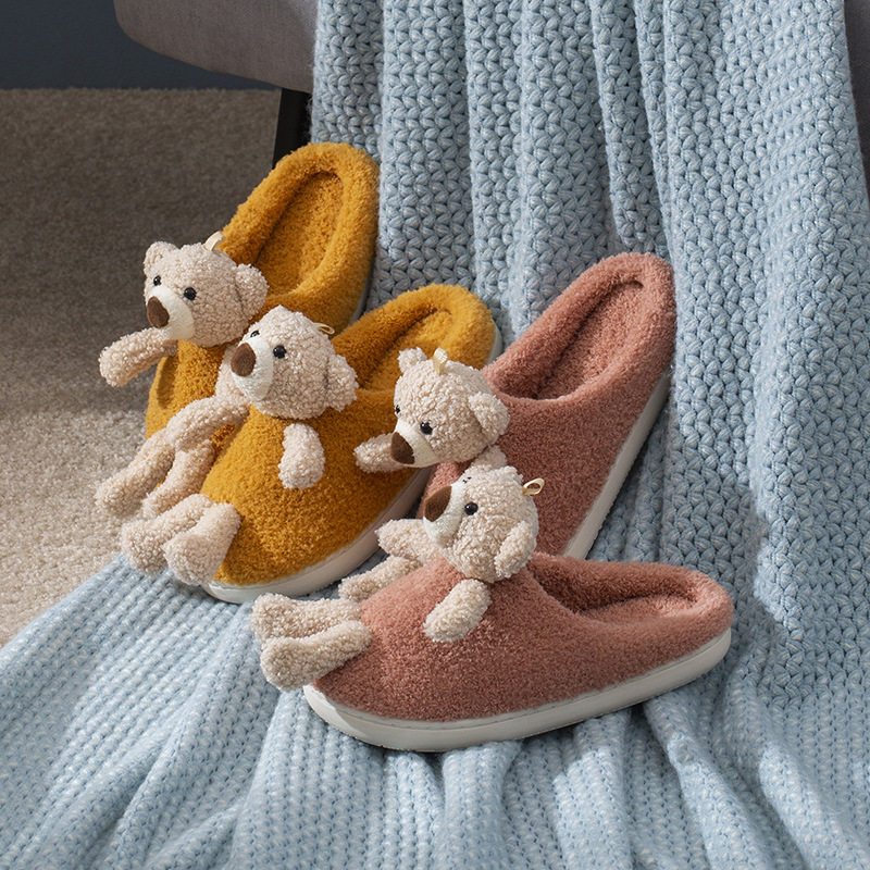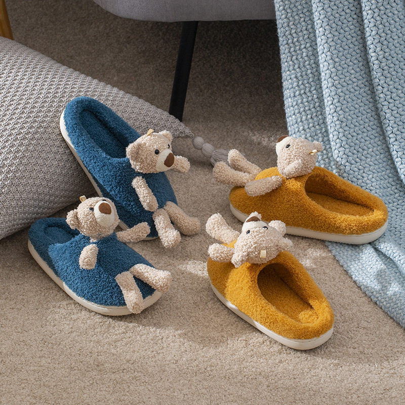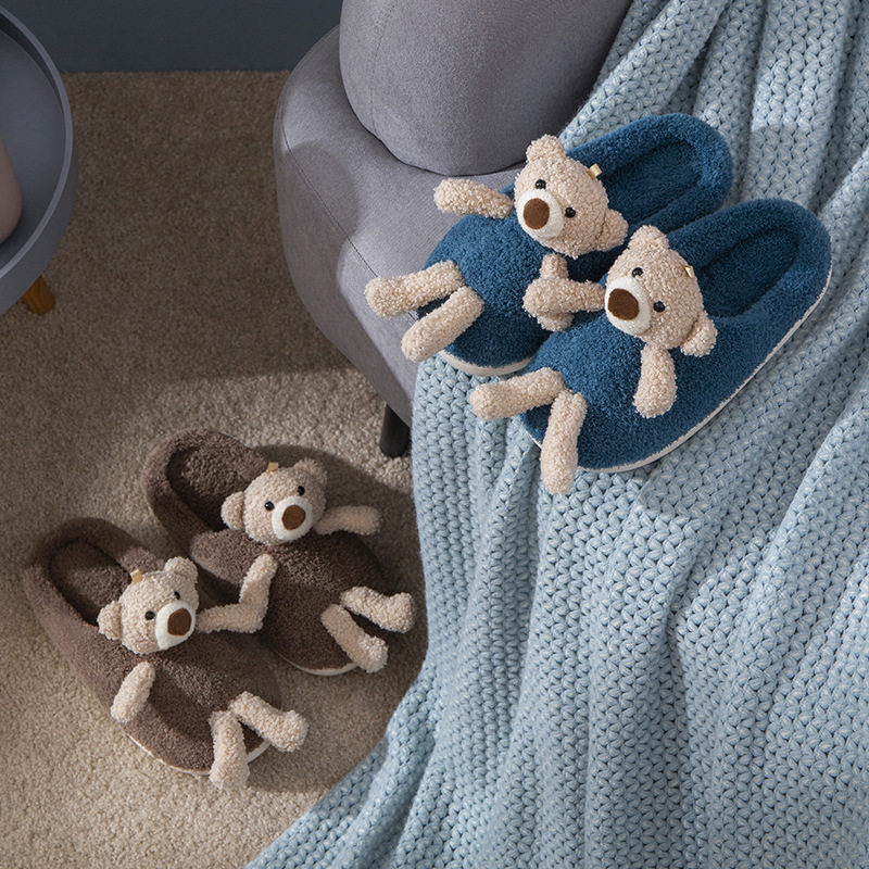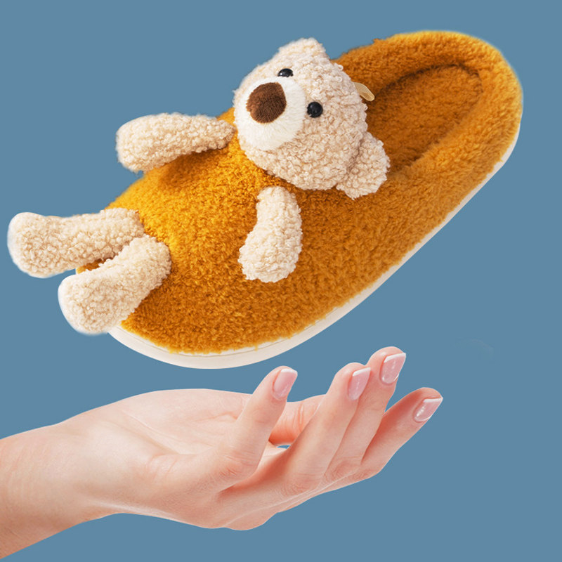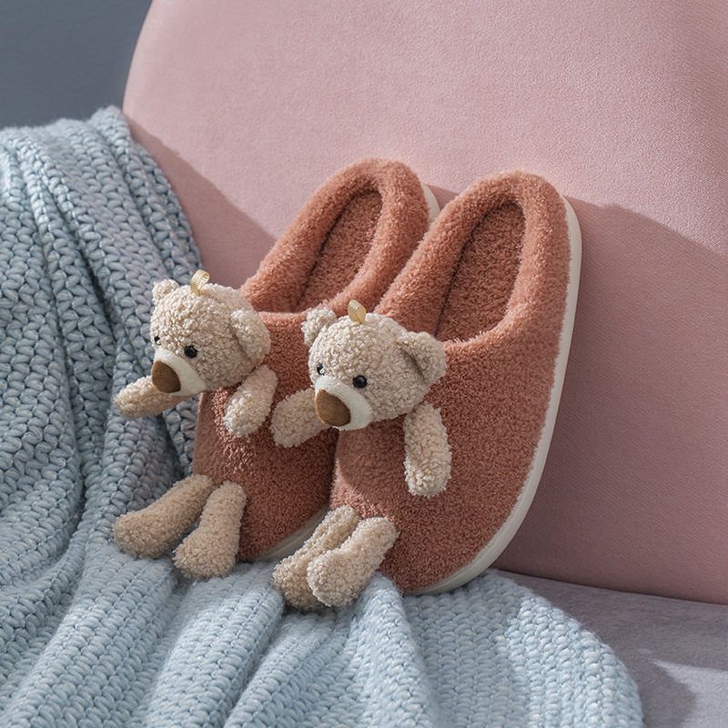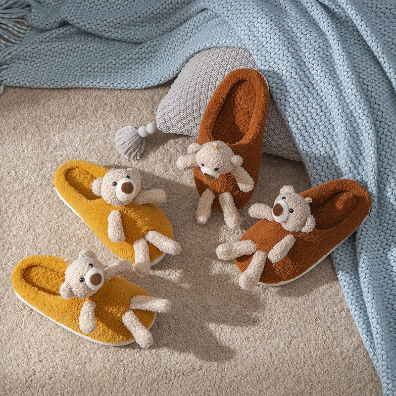 Мультяшные удерживающие тепло демисезонные милые трехмерные тапочки, для влюбленных, с медвежатами