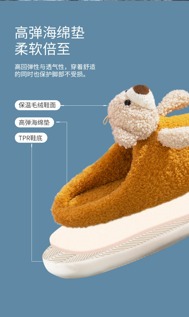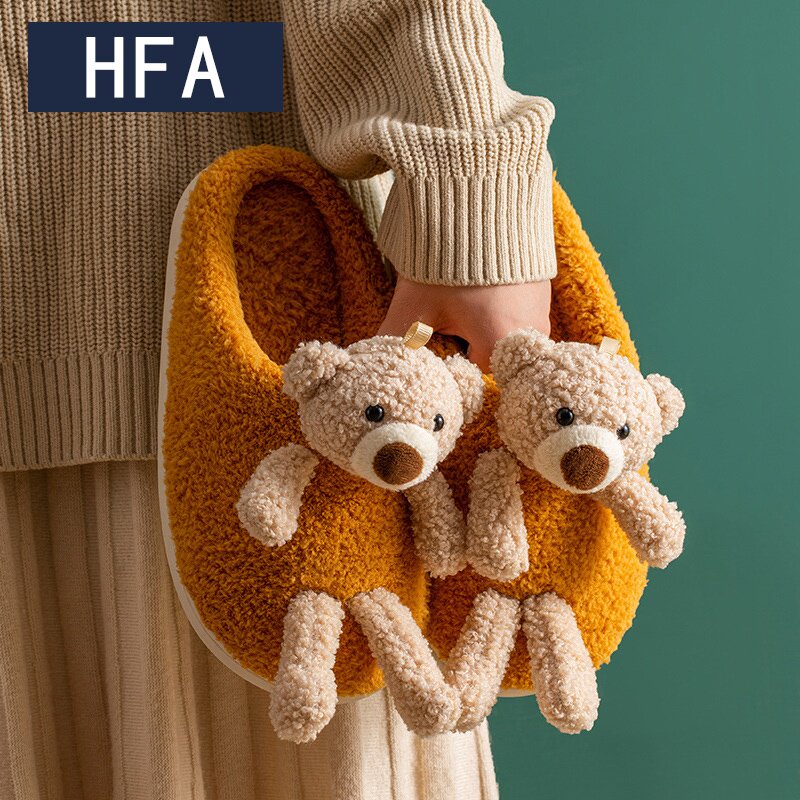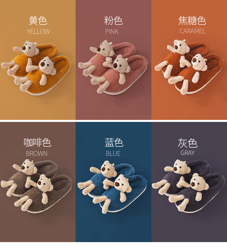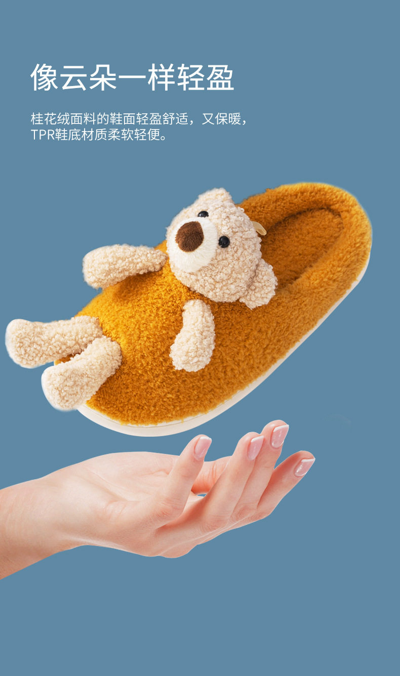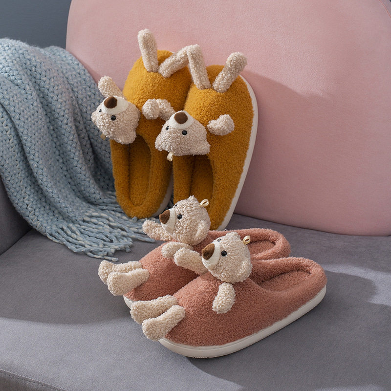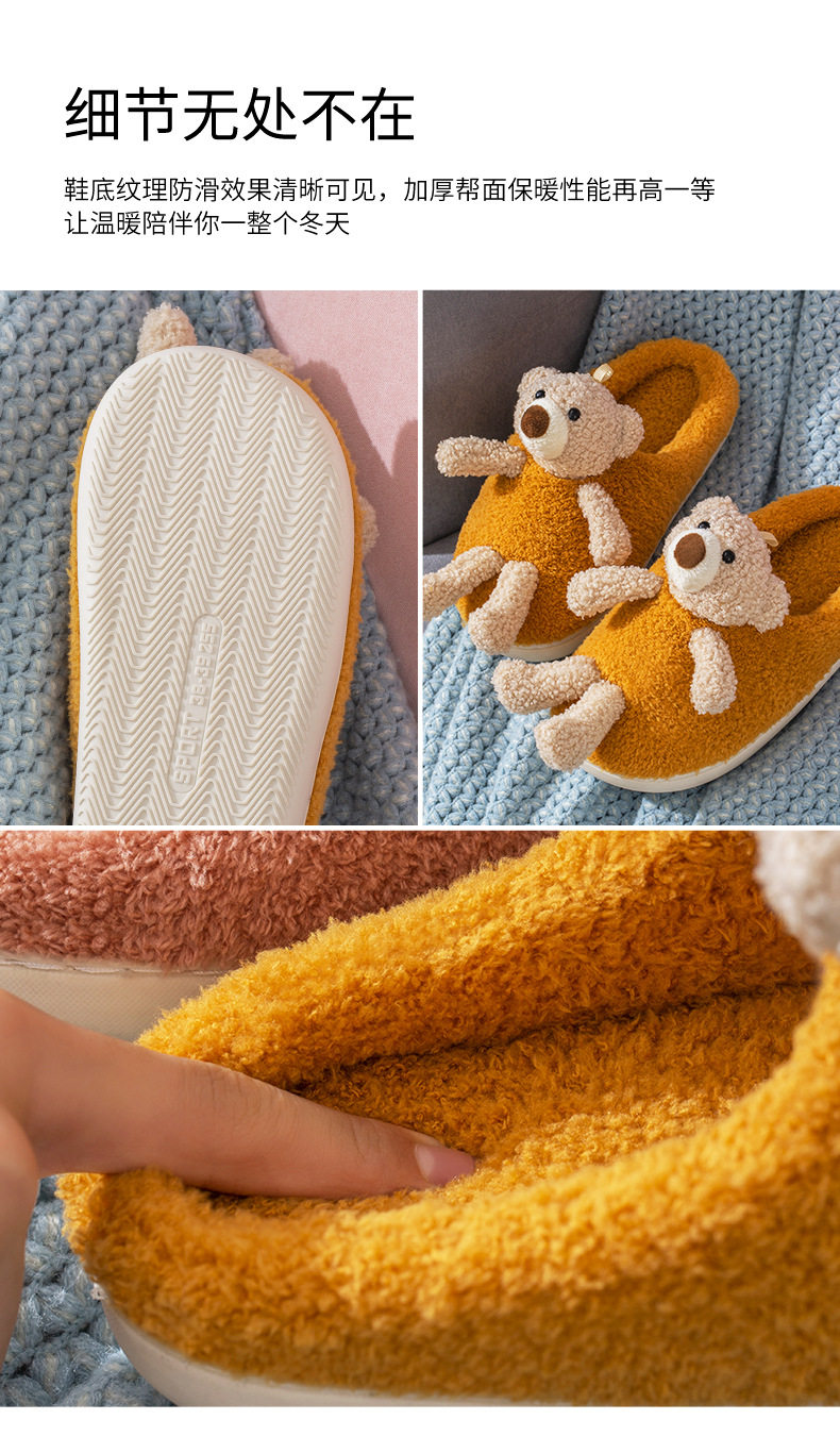 Мультяшные удерживающие тепло демисезонные милые трехмерные тапочки, для влюбленных, с медвежатами