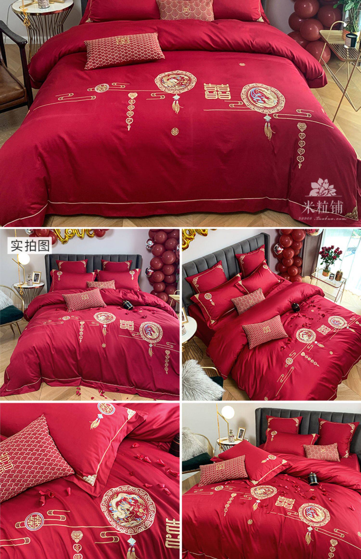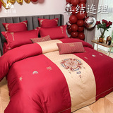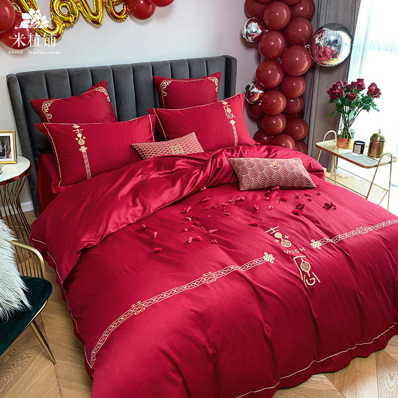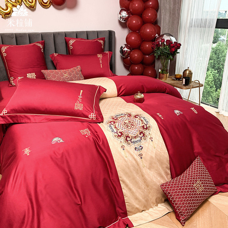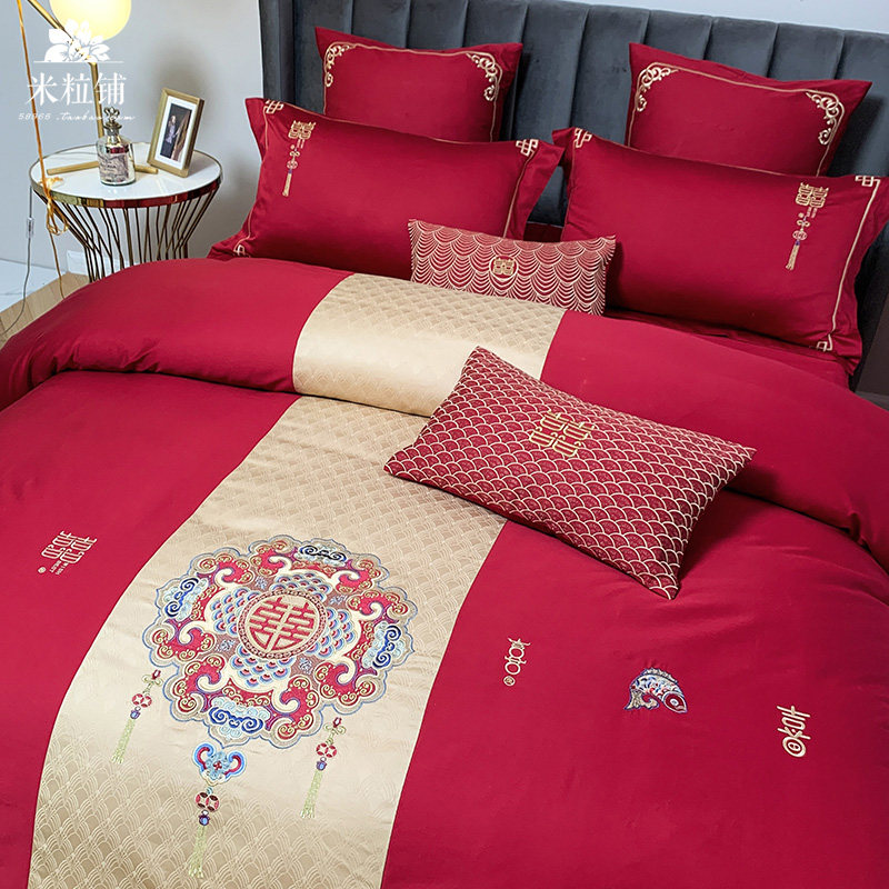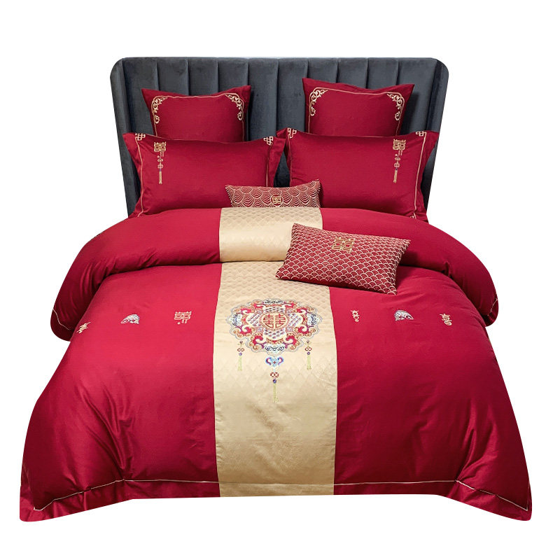 Красный комплект, хлопковое одеяло, пододеяльник, покрывало, китайский стиль, 60 шт, 4 предмета, с вышивкой