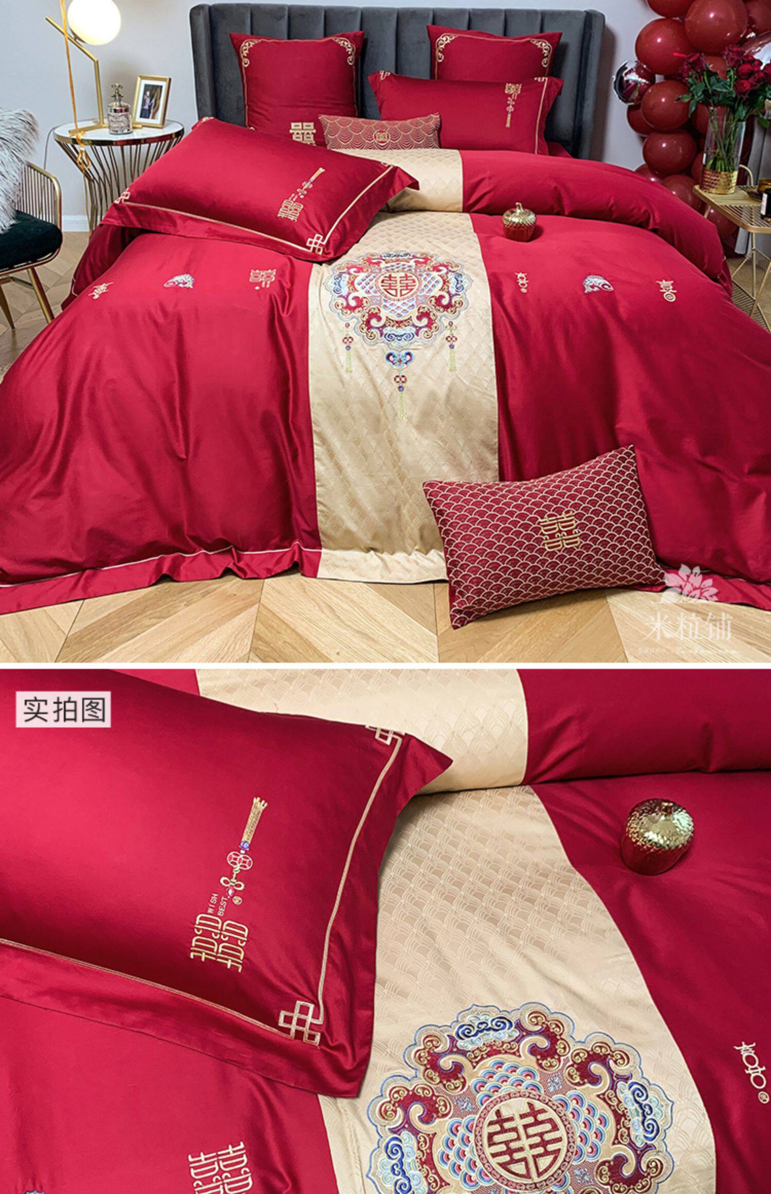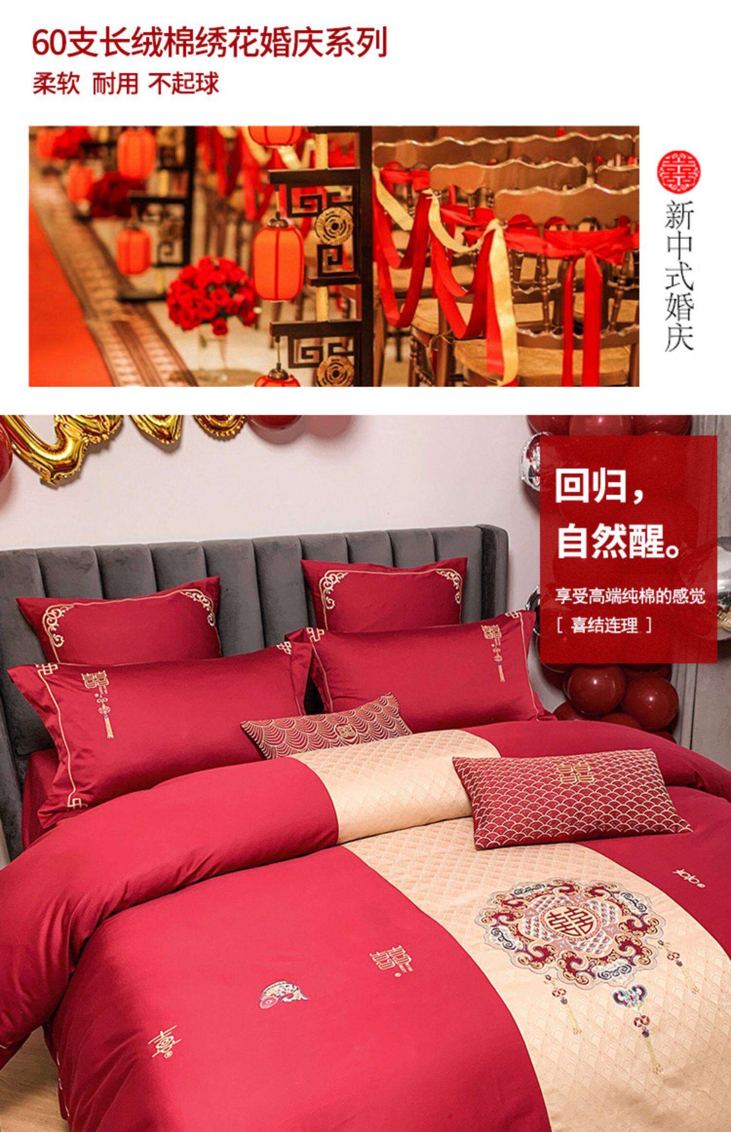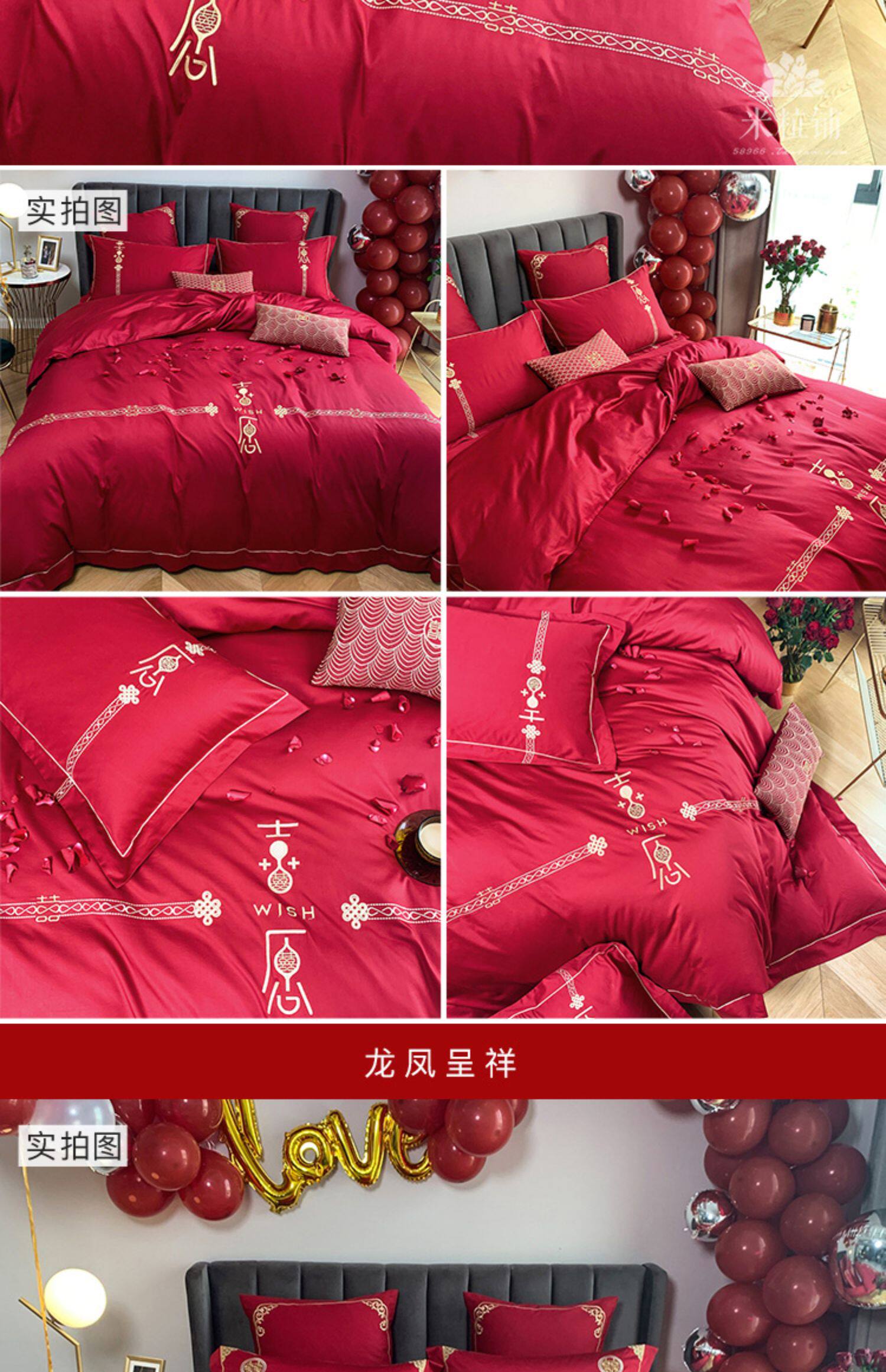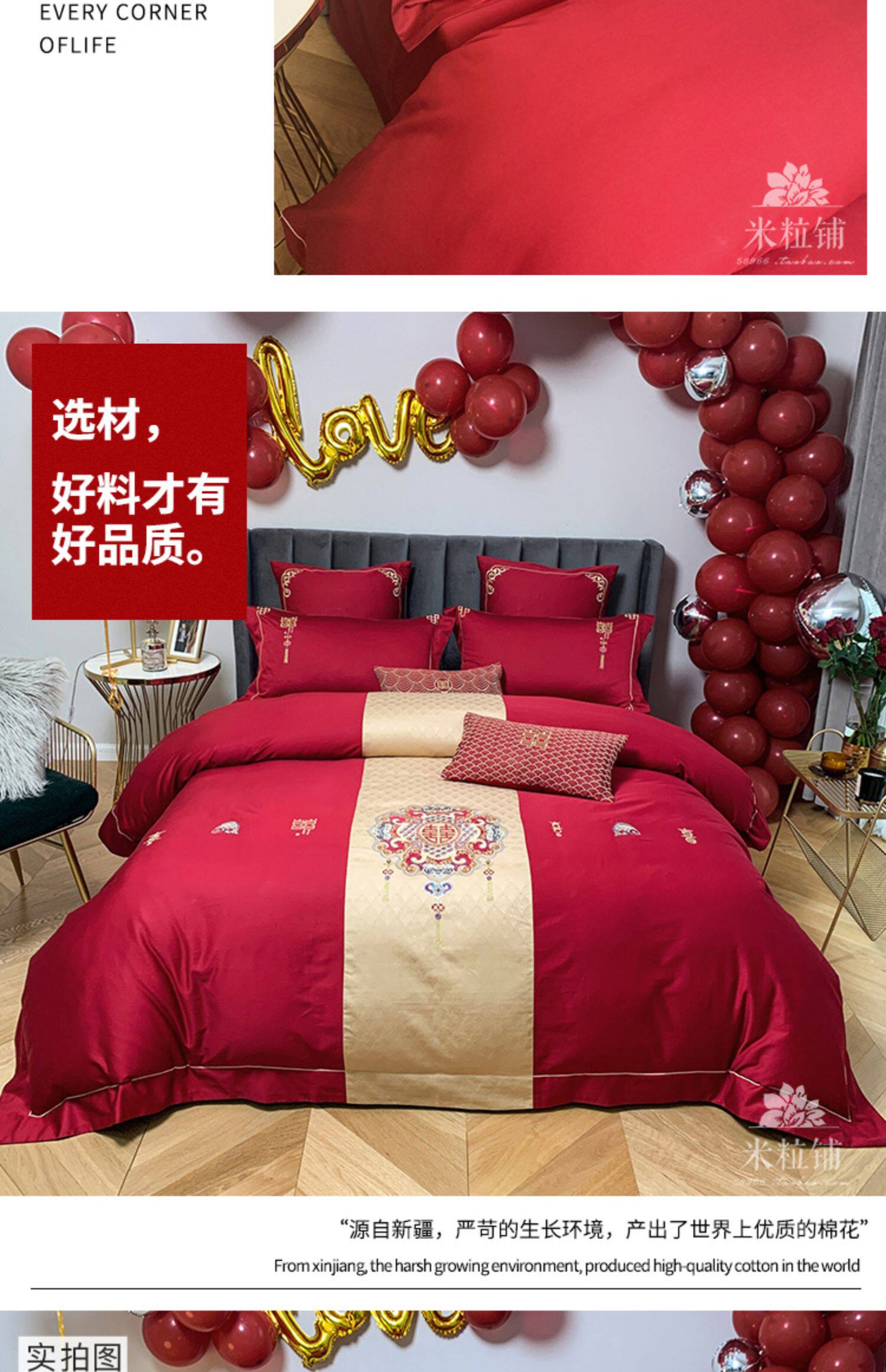 Красный комплект, хлопковое одеяло, пододеяльник, покрывало, китайский стиль, 60 шт, 4 предмета, с вышивкой