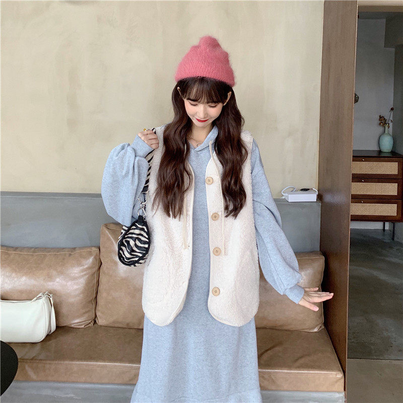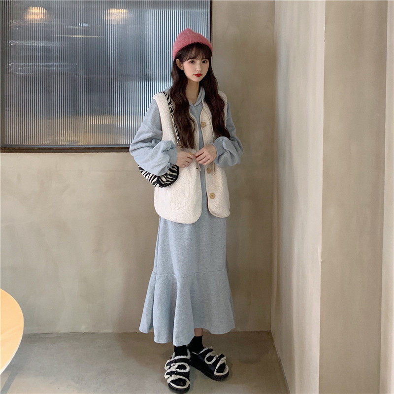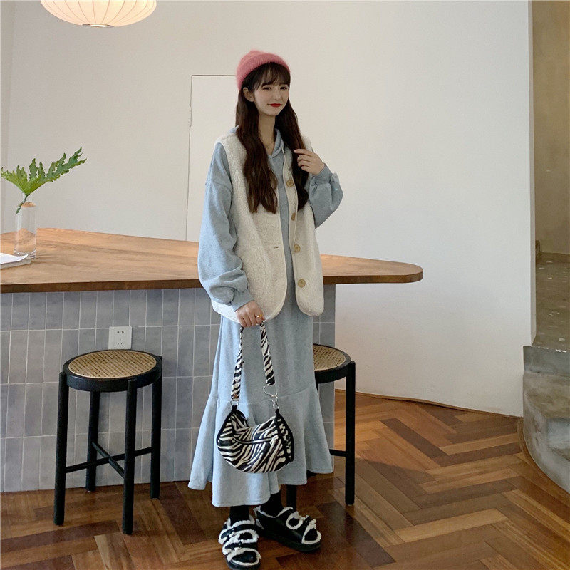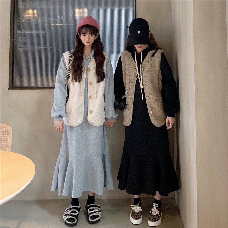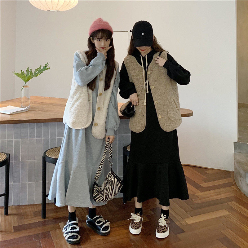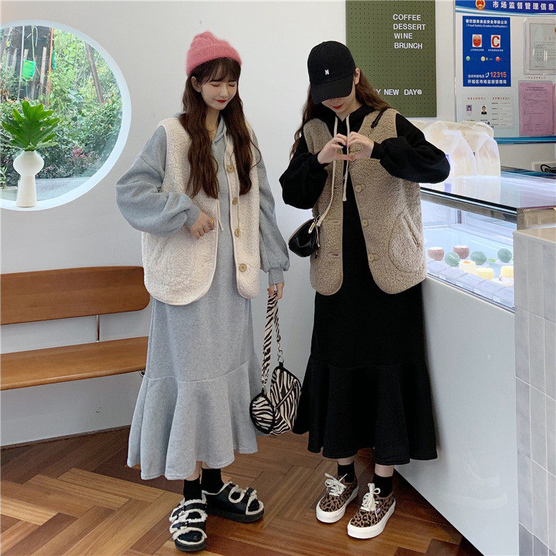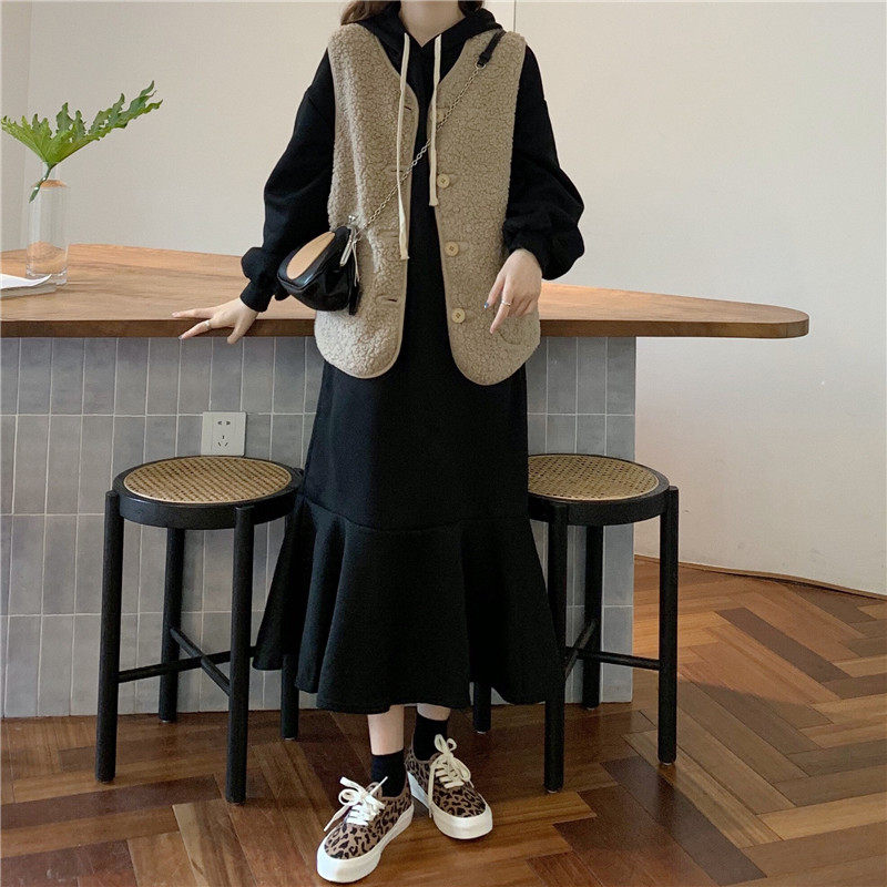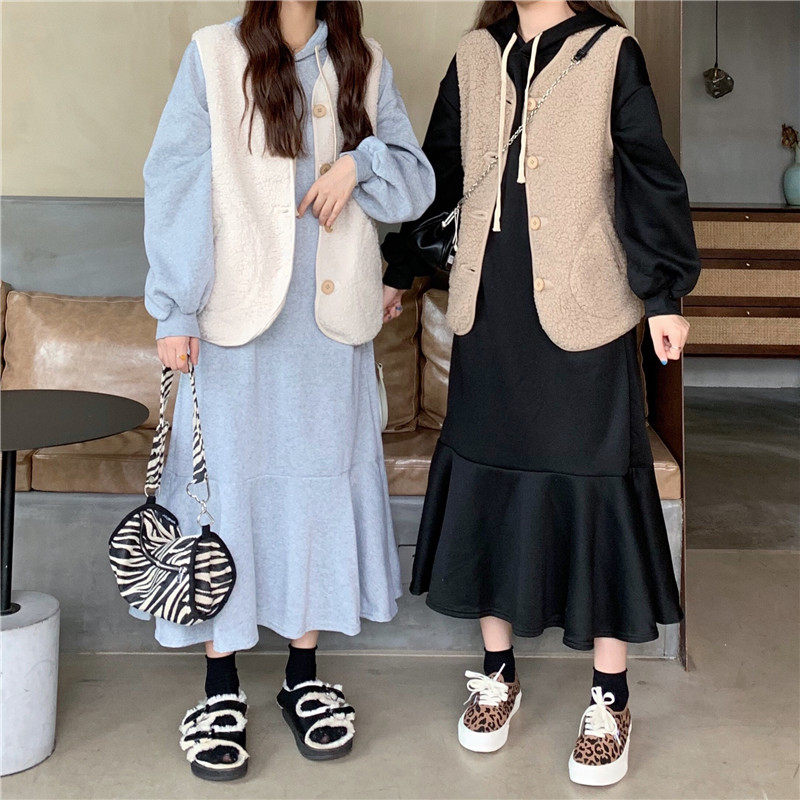 Осенний комплект, утепленная толстовка, платье, жилет, куртка, популярно в интернете