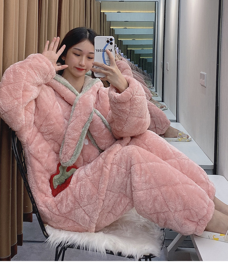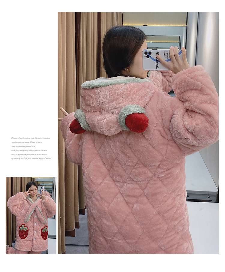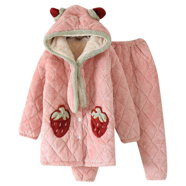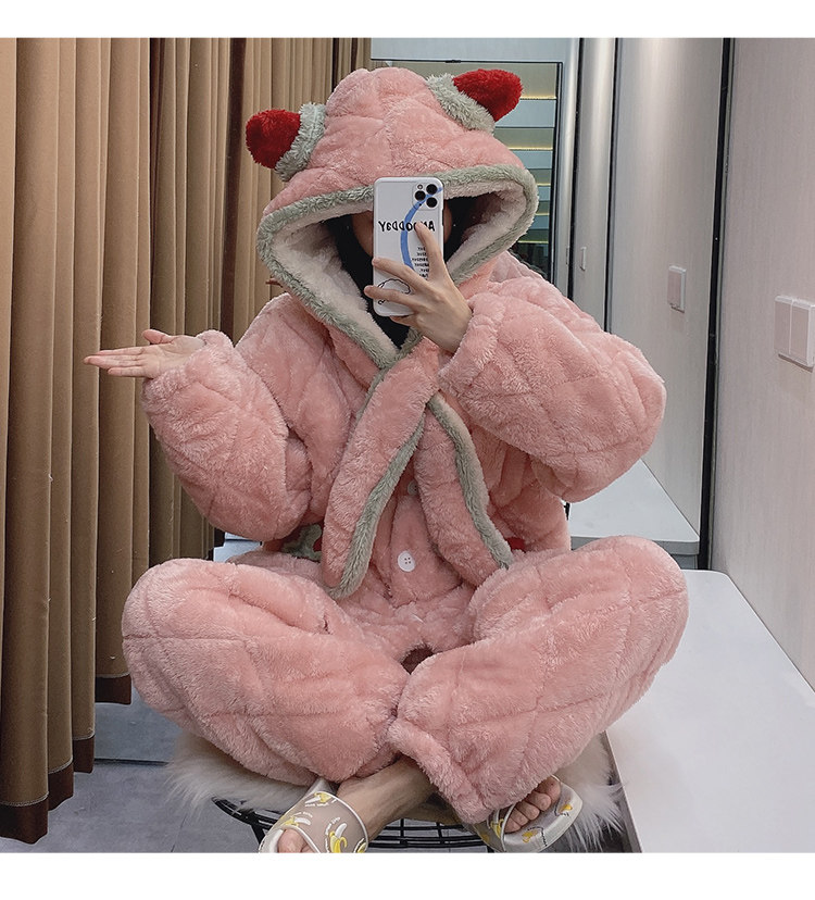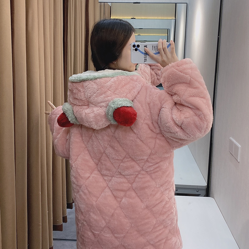 Зимняя стеганая флисовая удерживающая тепло пижама, мультяшная коралловая бархатная длинная толстовка с капюшоном, увеличенная толщина