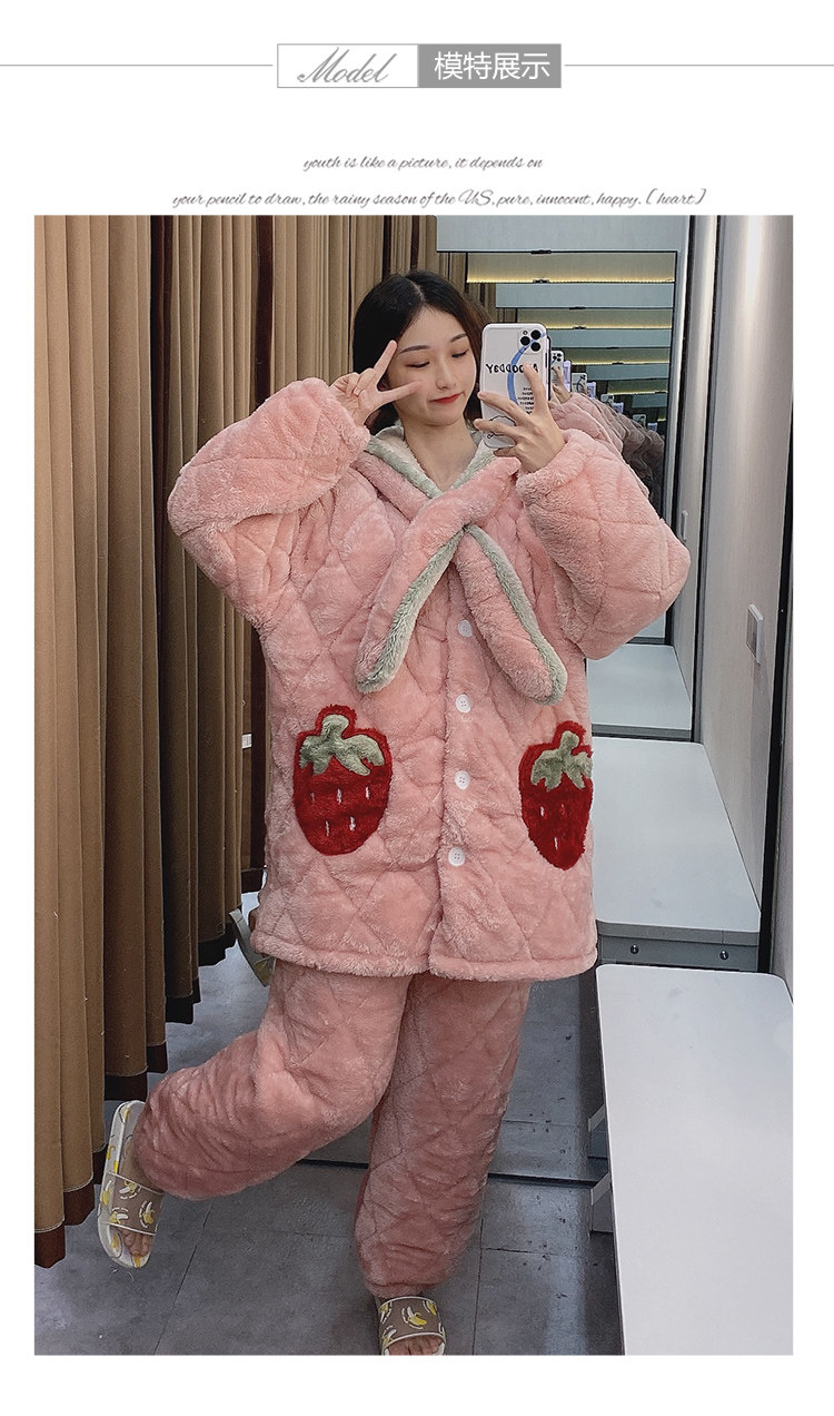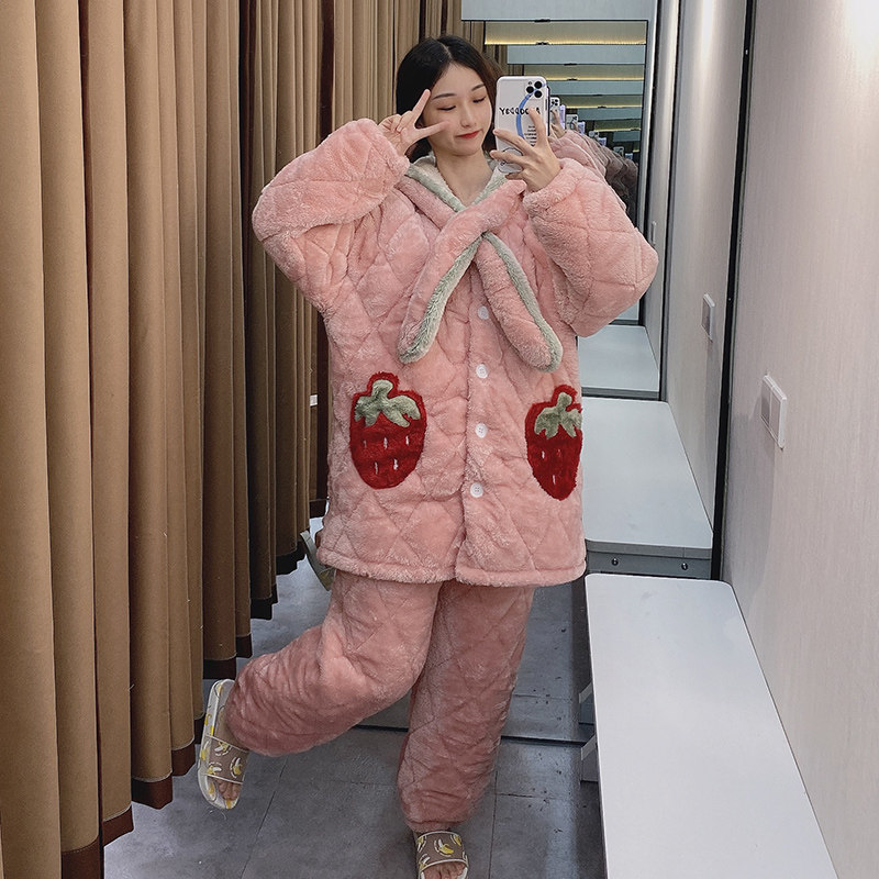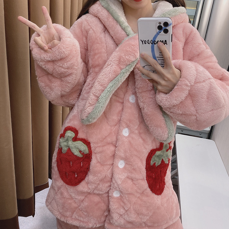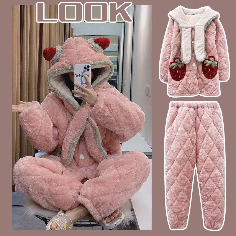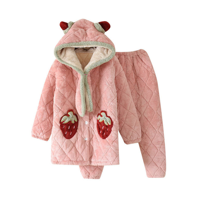 Зимняя стеганая флисовая удерживающая тепло пижама, мультяшная коралловая бархатная длинная толстовка с капюшоном, увеличенная толщина