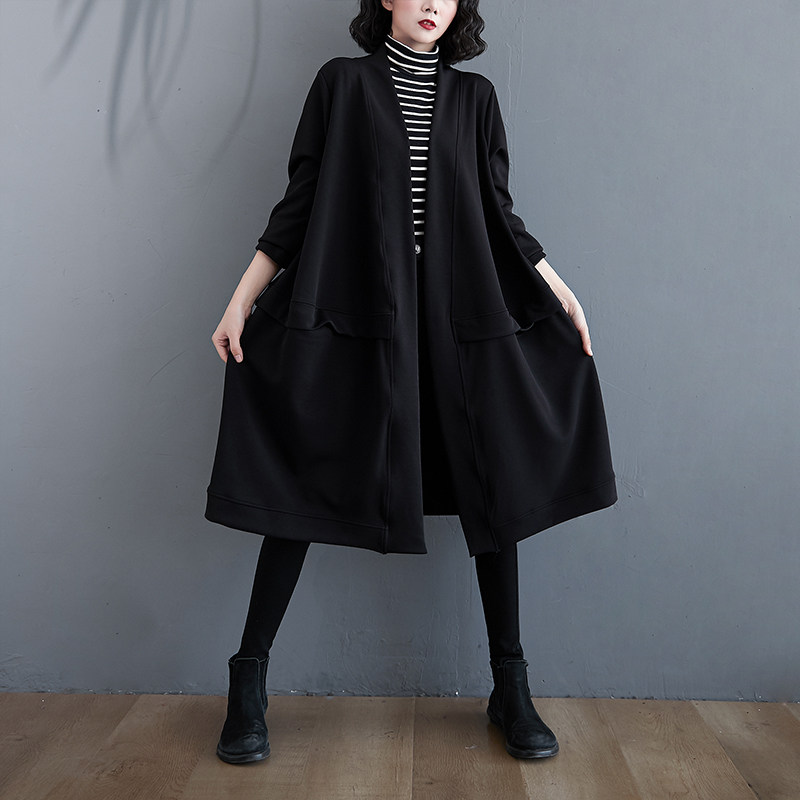 Осенний длинный кардиган для отдыха, лонгслив, плащ, куртка, большой размер, по фигуре, подходит для полных девушек, средней длины