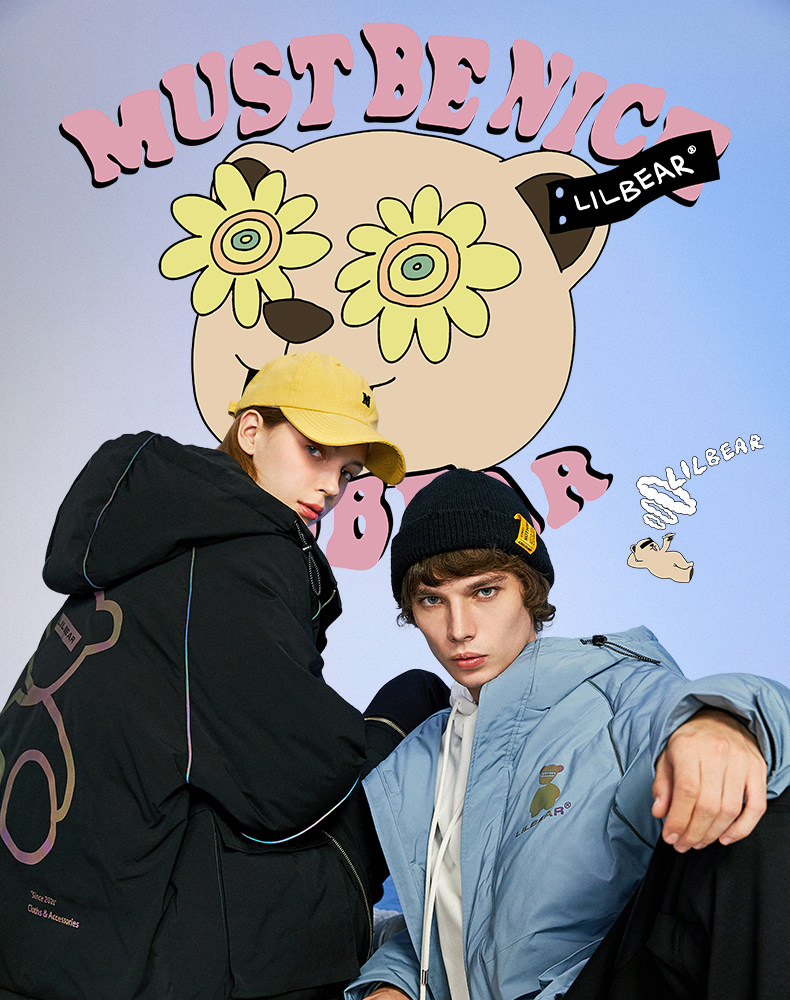 Lilbetter Короткий зимний пуховик, трендовая утепленная куртка для влюбленных, с медвежатами, в корейском стиле, оверсайз