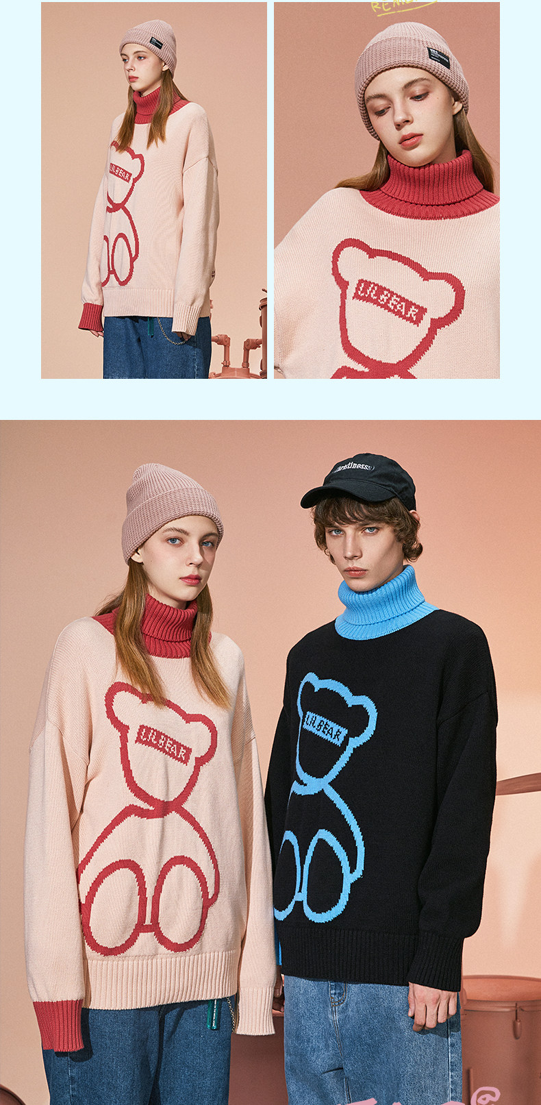 Lilbetter Трикотажный большой высококачественный свитер для влюбленных, с медвежатами, принт