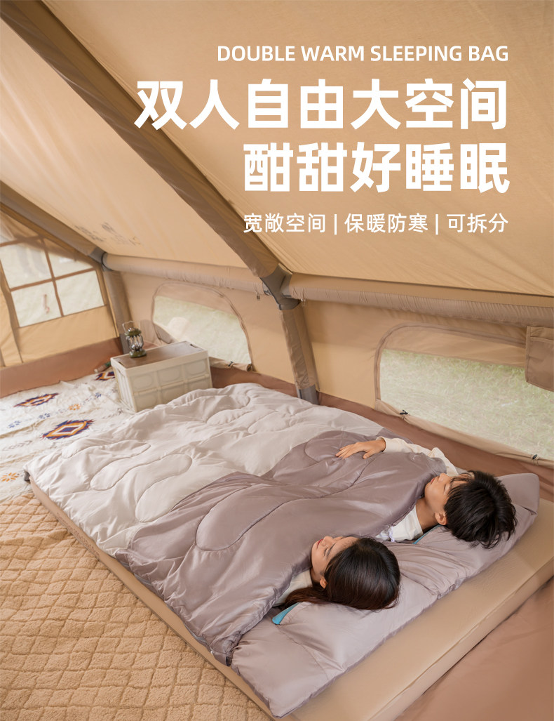 Дорожный удерживающий тепло спальный мешок для двоих для кемпинга для взрослых, увеличенная толщина