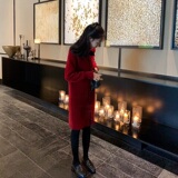 Демисезонное длинное базовое красное трикотажное платье, 2021 года, увеличенная толщина, средней длины, длина макси, яркий броский стиль