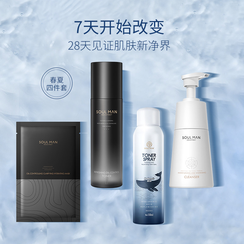 极男 Очищающее молочко для ухода за кожей, лосьон, комплект, спрей, натуральное масло, полный комплект, контроль жирного блеска