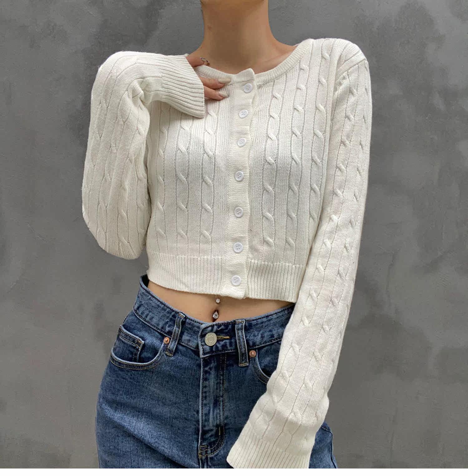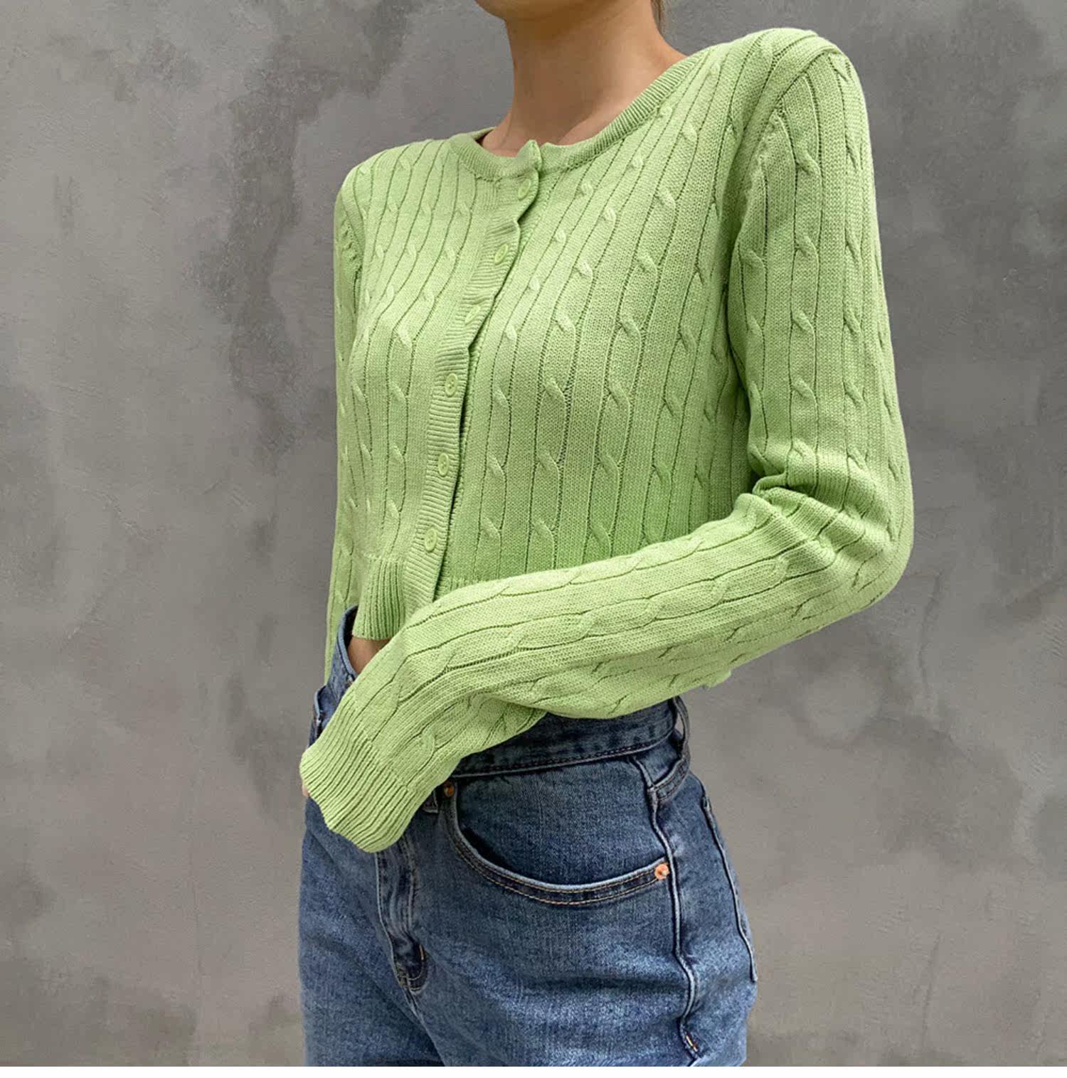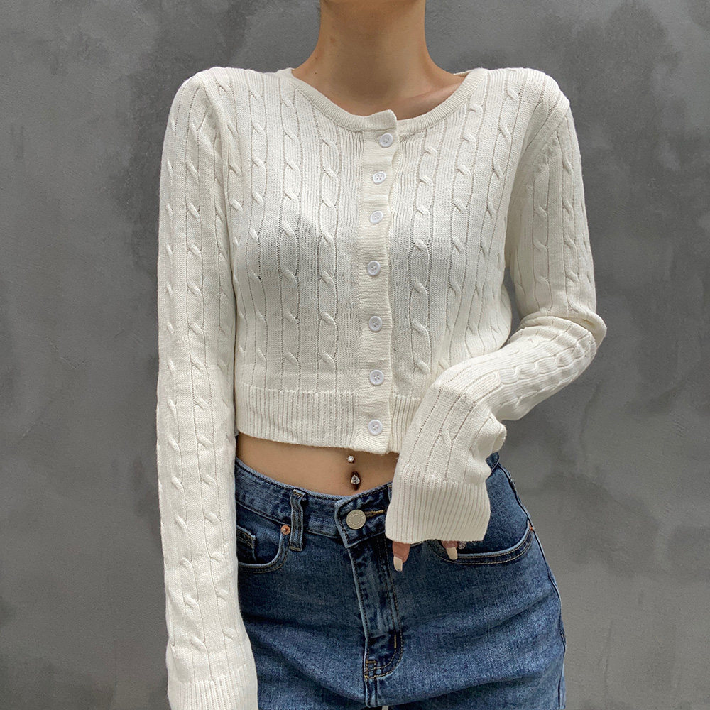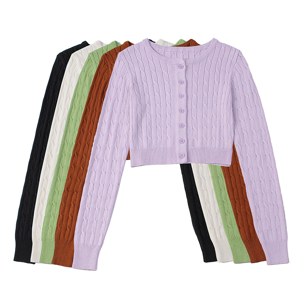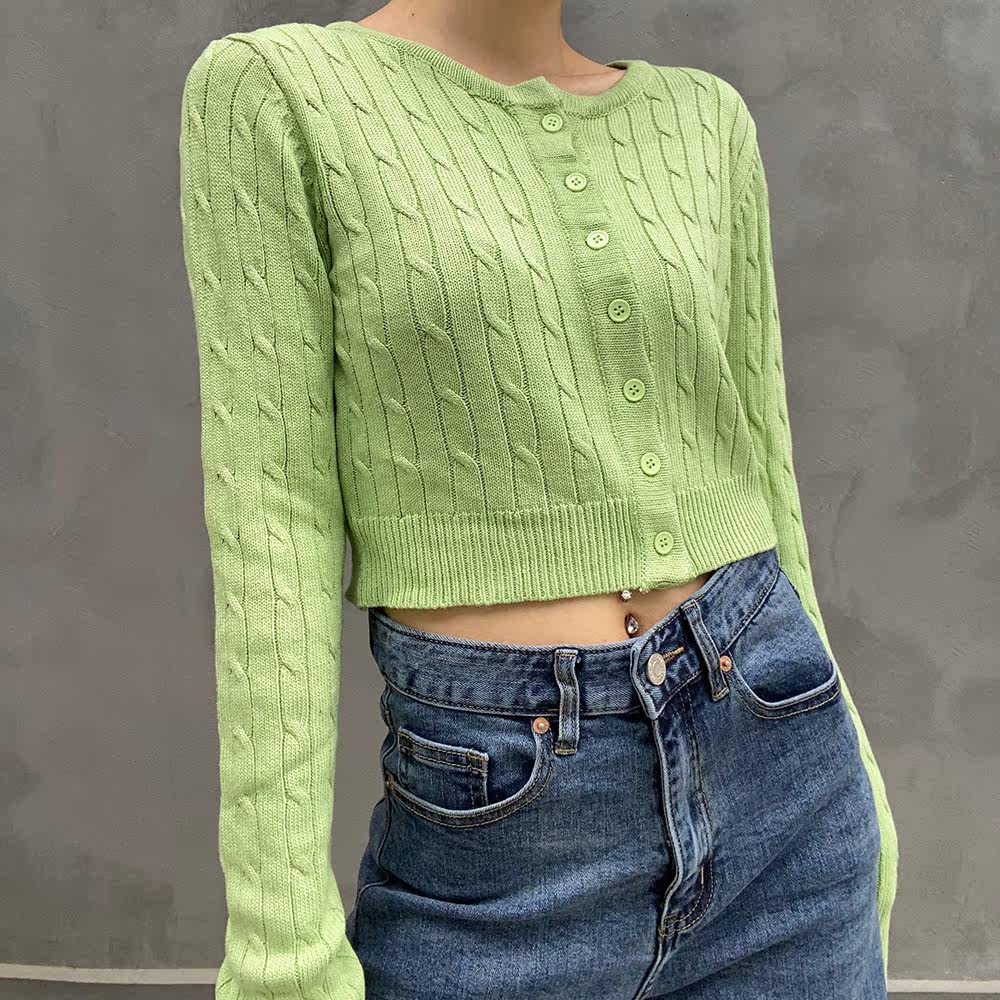 Ретро осенний короткий кардиган, трикотажный свитер, французский стиль, высокая талия