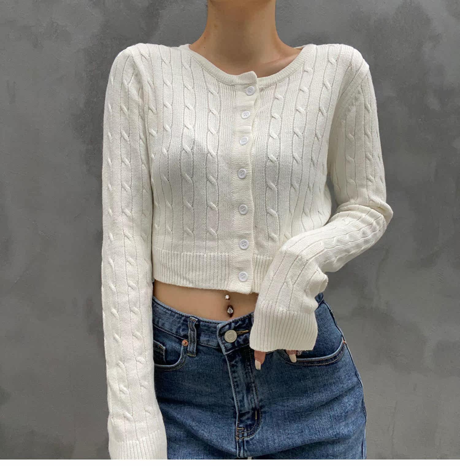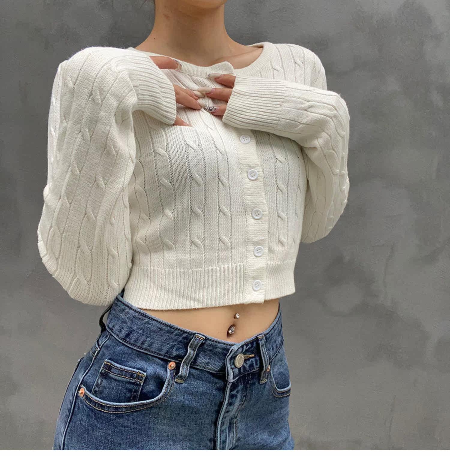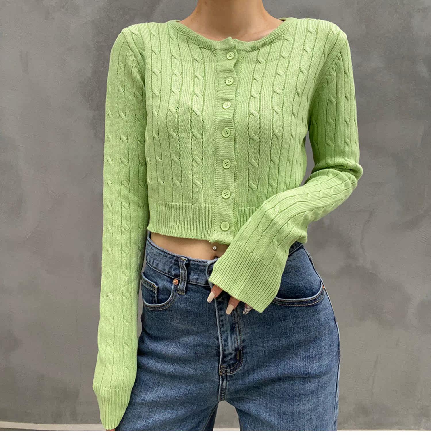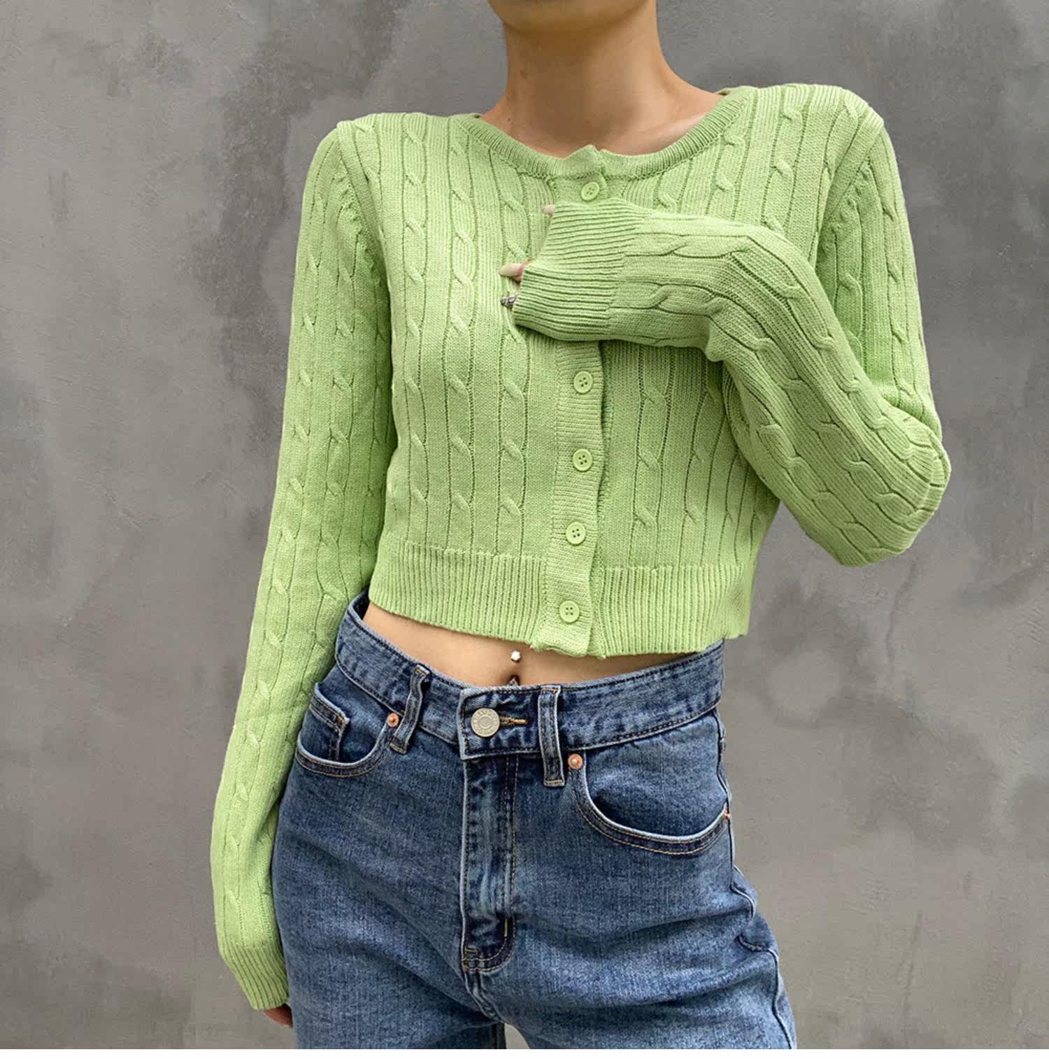 Ретро осенний короткий кардиган, трикотажный свитер, французский стиль, высокая талия
