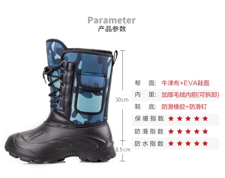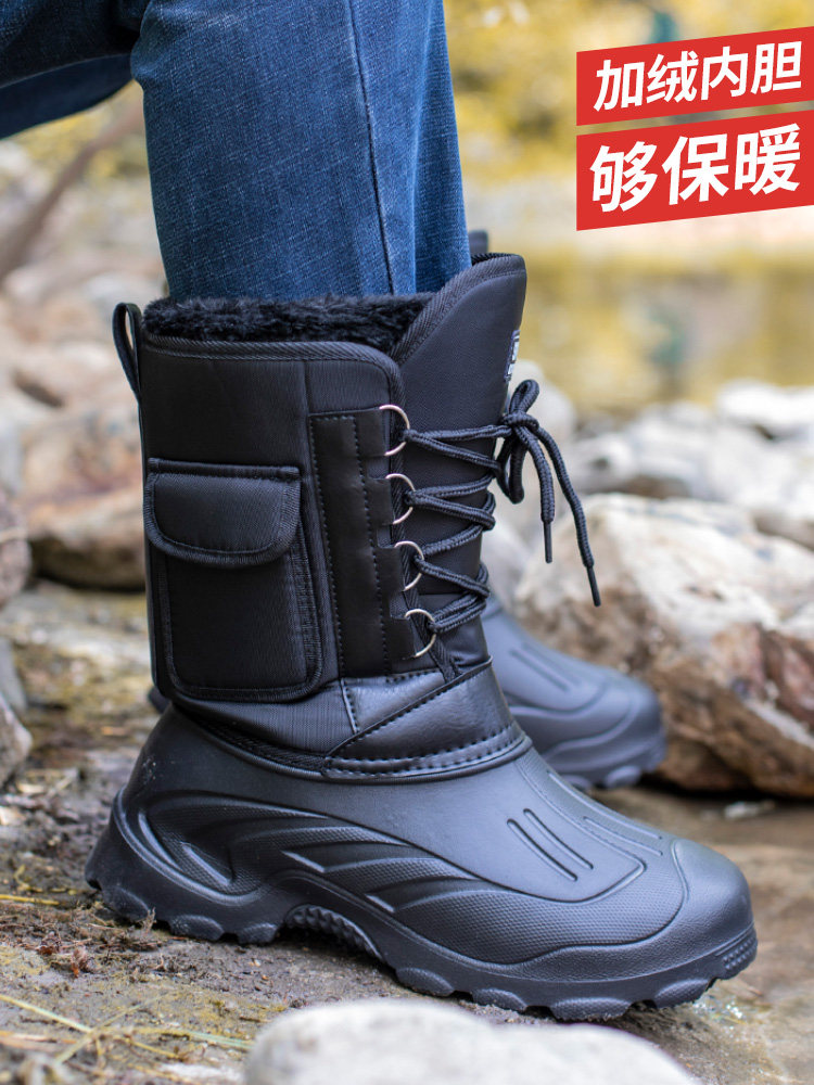 Мужские демисезонные утепленные ботинки, высокие нескользящие лыжные высокие сапоги