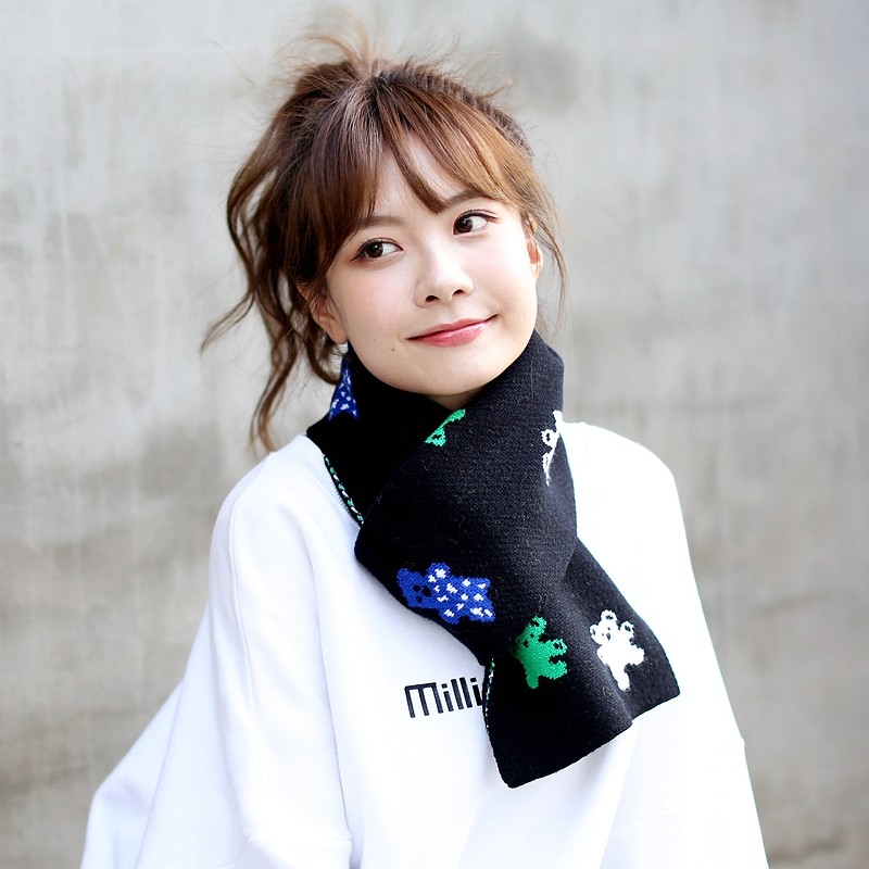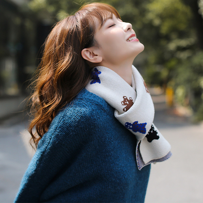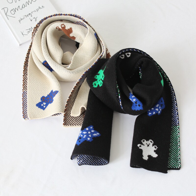 Брендовый демисезонный удерживающий тепло мультяшный короткий двусторонний шарф, в корейском стиле, с медвежатами