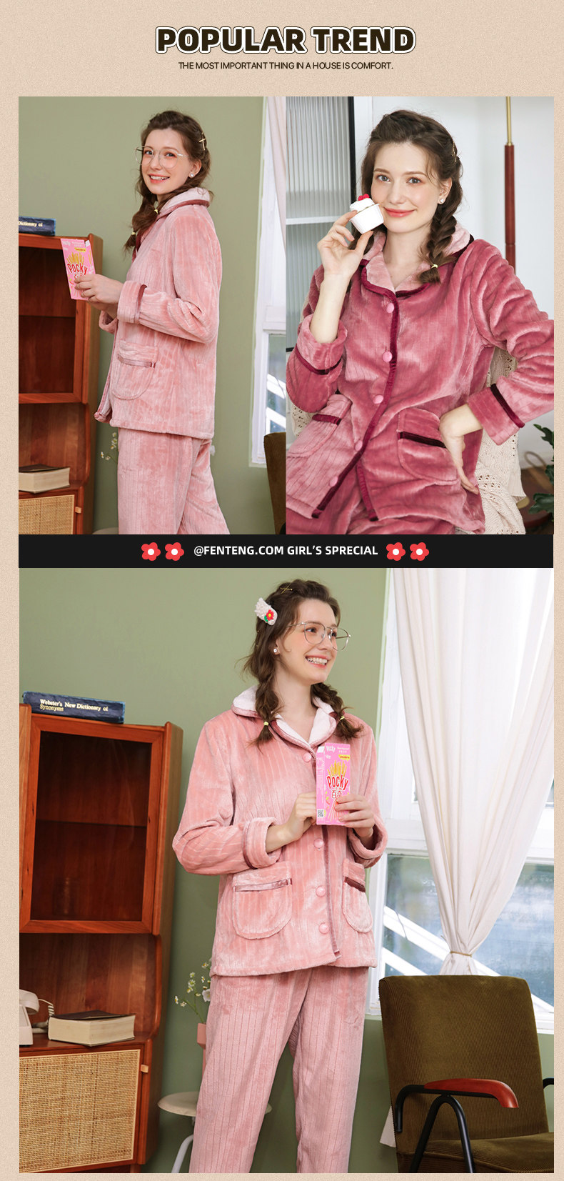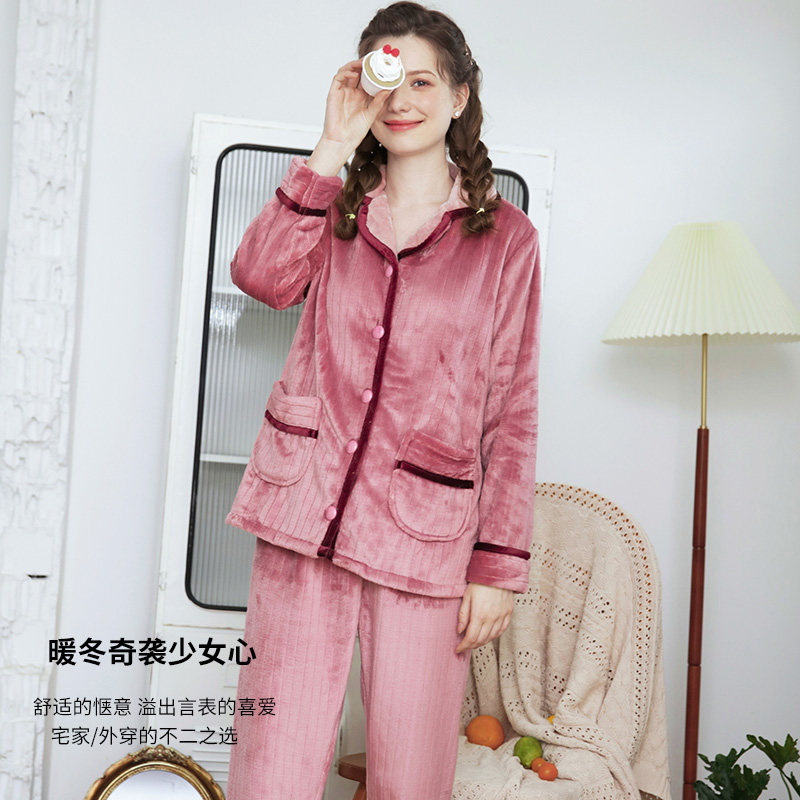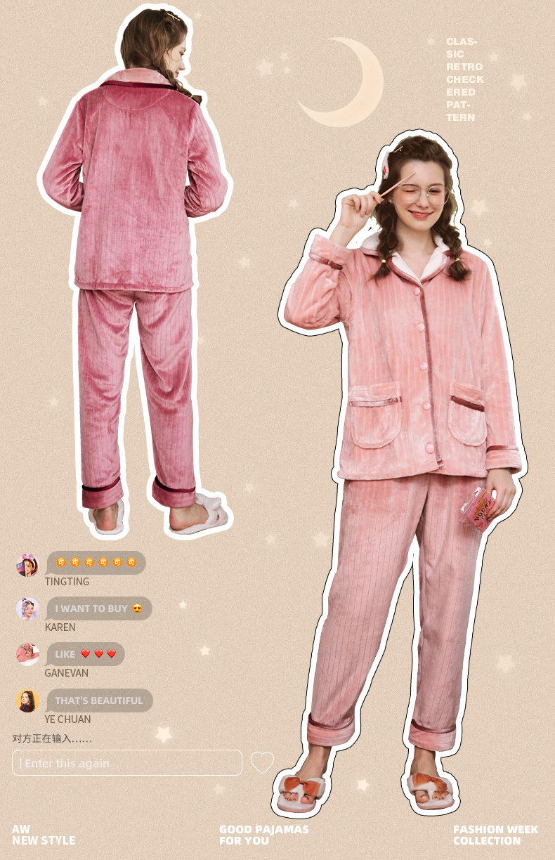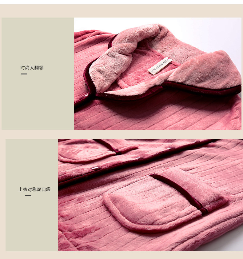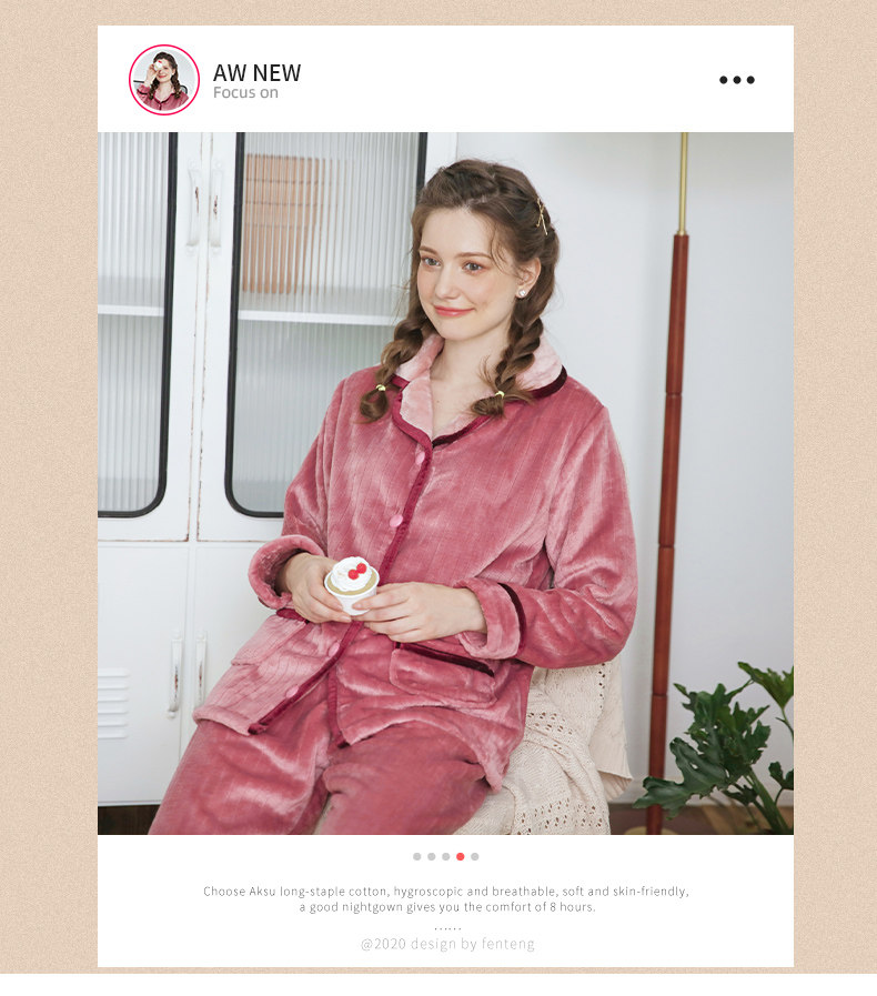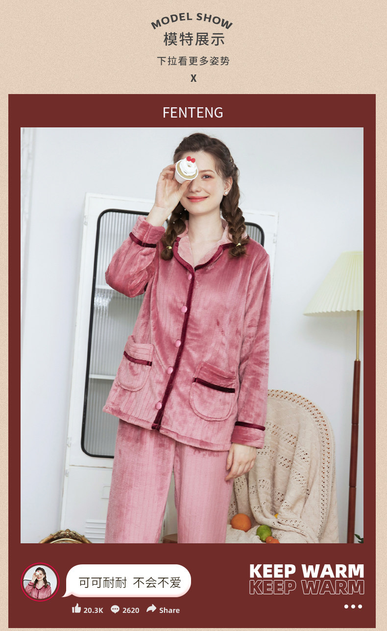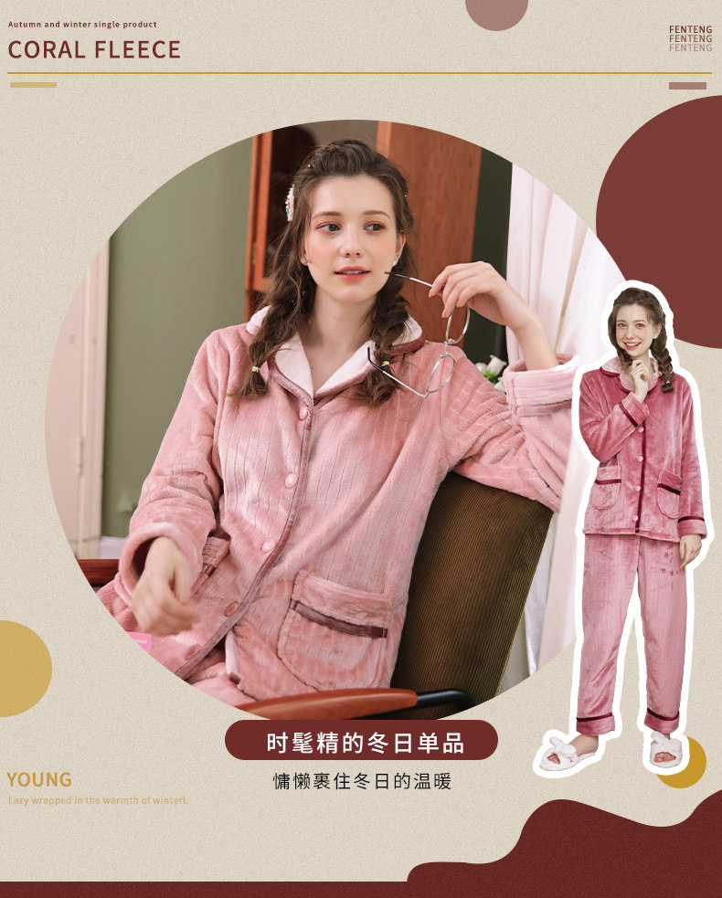 芬腾 Демисезонная пижама, коралловый бархатный кардиган, удерживающий тепло лонгслив, фланелевый комплект, простой и элегантный дизайн