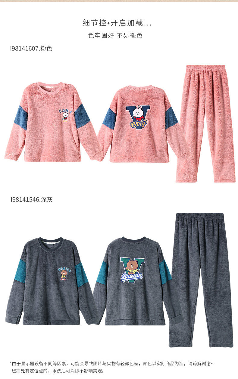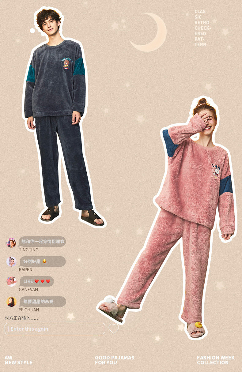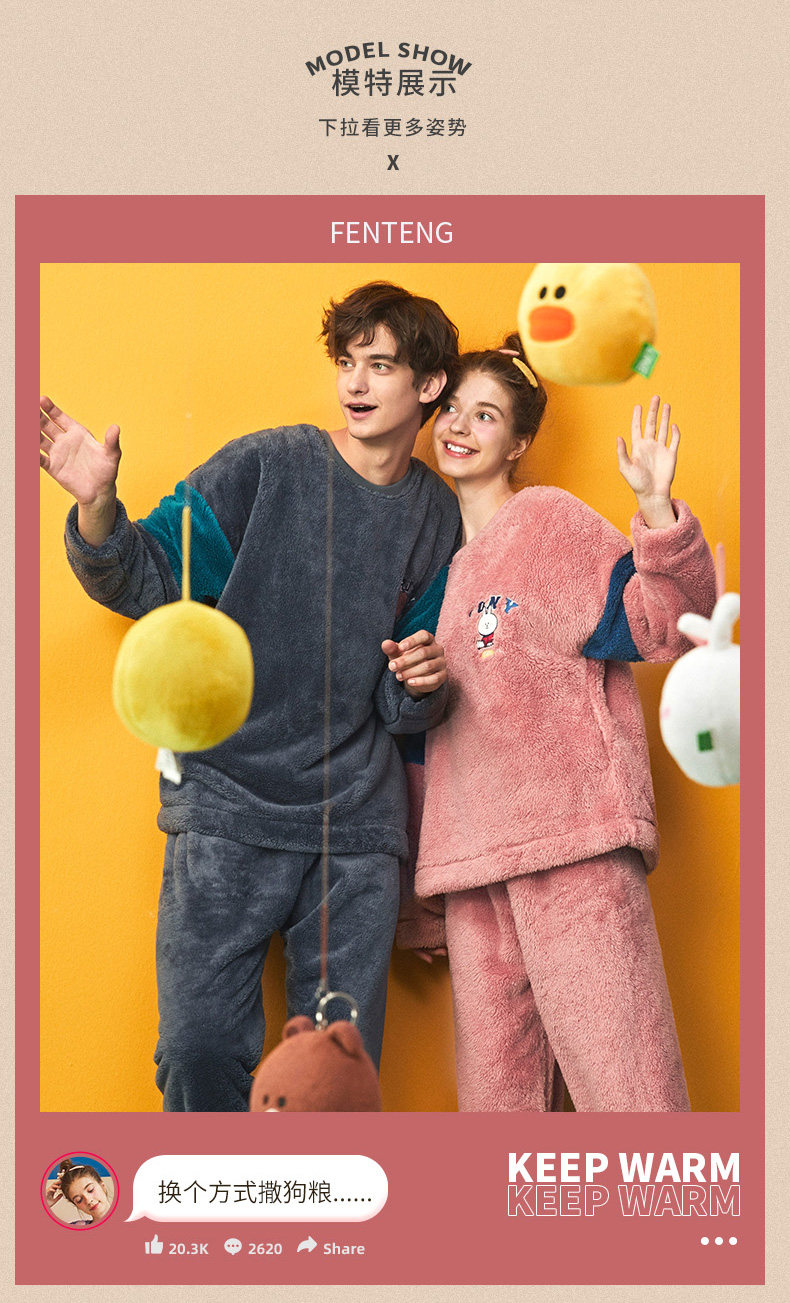 芬腾 Коралловая бархатная фланелевая пижама, демисезонный комплект, для влюбленных, увеличенная толщина