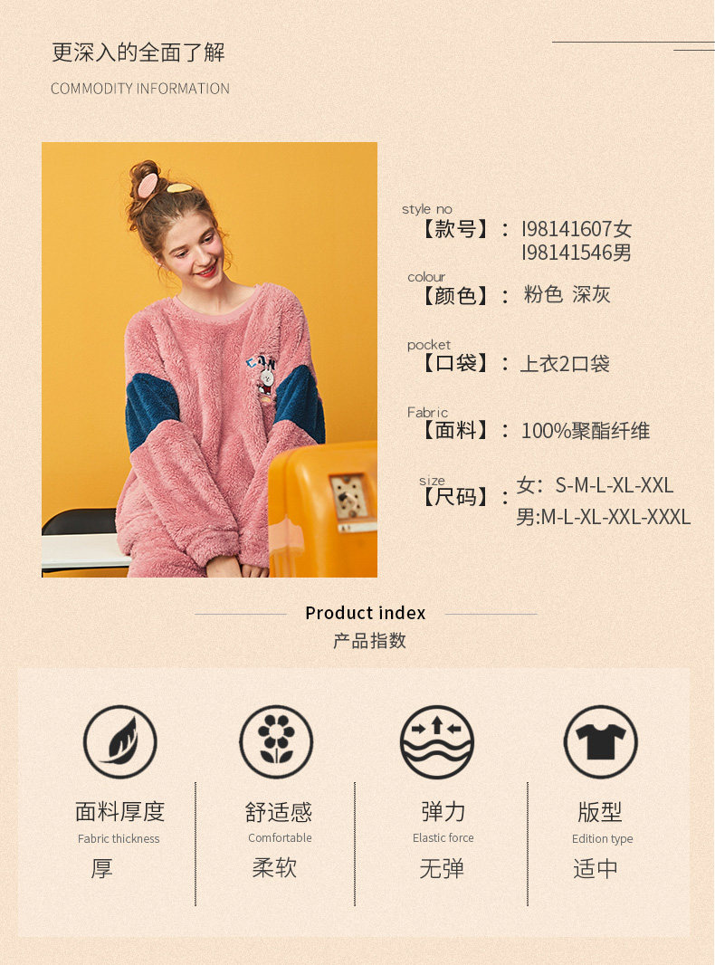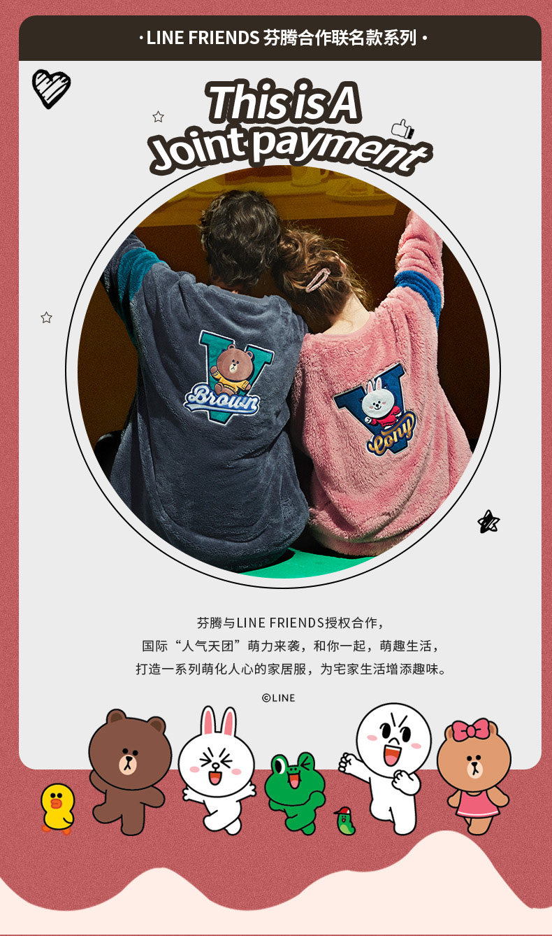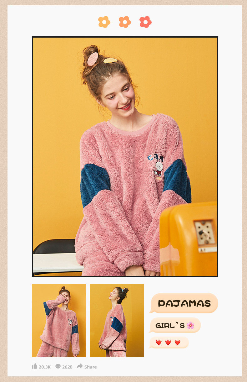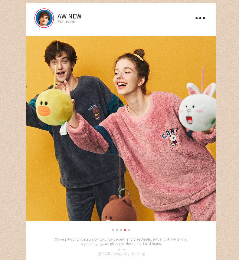 芬腾 Коралловая бархатная фланелевая пижама, демисезонный комплект, для влюбленных, увеличенная толщина