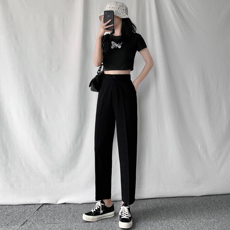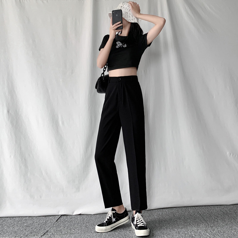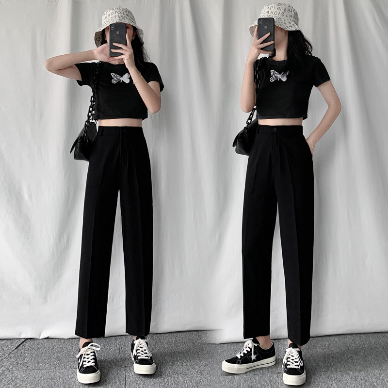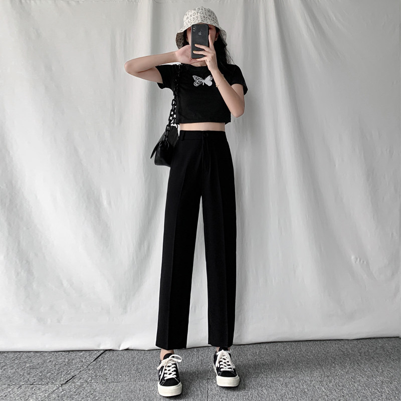 Костюм, штаны, осенние черные повседневные брюки, коллекция 2022, высокая талия, свободный прямой крой